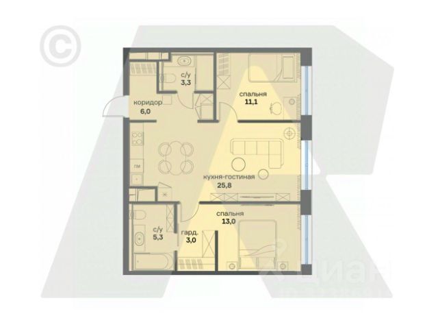 • ✅ Минимальная площадь: 59,8 м²