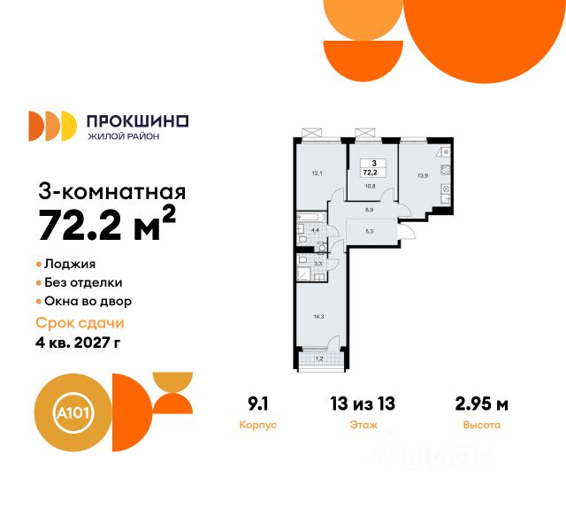 • ✓ В базе Циан 36 3-комнатных квартир на 13 этаже рядом с метро Прокшино