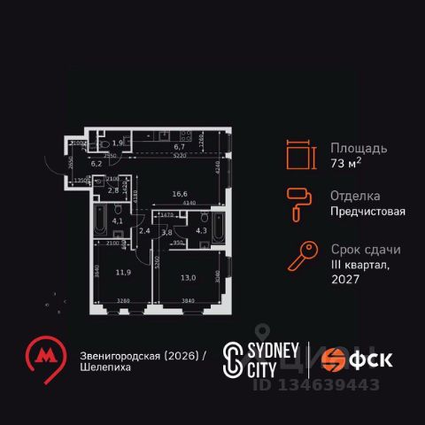 • ✓ В базе Циан 11 3-комнатных квартир на 13 этаже рядом с метро Шелепиха