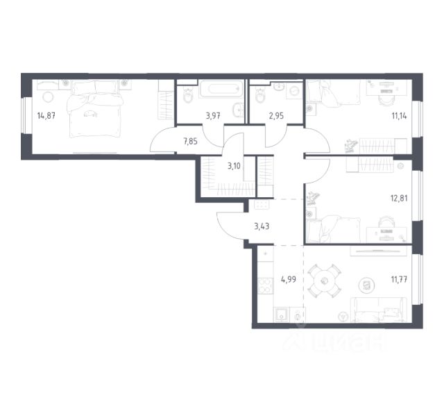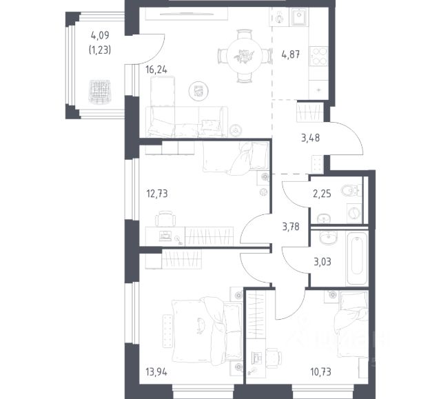 Квартира с кухней-гостиной и тремя спальнями в Квартале Герцена. Особенности планировки: второй санузел, гардеробная, окна на две стороны, постирочная, предчистовая отделка. Квартиру можно купить онлайн. В квартире выполнена отделка "под чистовую". Установлены окна с двойным стеклопакетом, радиаторы с терморегуляторами. На полу цементно-песчаная стяжка. В квартиры заведены кабели для интернета и ТВ. Входная сейф-дверь не требует замены. Организован поквартирный учёт энергоресурсов (водоснабжение, отопление, электричество). Квартал "Герцена" расположен в Бирюлёве Восточном — районе на юге Москвы. Дорога до ТТК займет всего полчаса на автомобиле, до станции метро и ж/д станции "Царицыно" — 13 минут, а до автовокзала "Южные ворота" — 20 минут. До автобусных остановок можно дойти пешком. В 2027-2028 году откроется новая станция метро "Лебедянская", дорога до неё займет всего 18 минут. Общая площадь "Квартала Герцена" составляет 27,3 га. Дома состоят из разноуровневых секций высотой от 6 до 55 этажей с видовыми террасами и балконами. На территории квартала будет построена поликлиника, детский сад на 350 мест и воспитательно-образовательный комплекс на 1075 мест, а также рестораны, клиники, магазины и салоны красоты. Объявление от застройщика. Ипотека, материнский капитал. Обмен — один из способов покупки. Обмен подойдёт, если вы хотите быстро поменять старую квартиру на новую. Получить ипотеку или рассрочку, а также обменять квартиру можно онлайн. Запишитесь на онлайн-презентацию по телефону или на сайте. квартиры в нашей базе: ГРЦ01.2-Ж4.13.14.