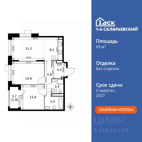 Прямая продажа от застройщика! Жилой Комплекс класса Комфорт+. Продаётся 3-к квартира номер 301 общей площадью 69.4 кв.м. на 13-м этаже 25 этажного здания. Без отделки. Особенности квартиры: - Организуем показ в удобное для вас время! - Просторная спальня, в которой можно разместить большую кровать. - Угловая планировка - больше пространства для ваших идей. - Увеличенная ширина окна/окон - больше света и визуального простора. - Увеличенное количество окон - дополнительное освещение и свежий воздух. - Панорамное окно (1 и более) - раскрывает просторы вашего дома. - Просторная ванная - место для расслабления и уединения. - Гостевой санузел - комфорт и удобство для ваших гостей. - Душ помимо ванной - дополнительное удобство для вашей семьи. - Евроформат - просторное и удобное жилье с отличной планировкой. - Место для игры/занятия спортом - идеальное пространство для активных детей. - Можно оборудовать рабочее место - комфорт для работы и учёбы. - Просторная мягкая зона - комфорт и уют для отдыха всей семьи. - Возможность добавить спальное место - дополнительный комфорт для гостей. - Ниша под шкаф - компактное и удобное место для вещей. - Лоджия - уютное место для отдыха и тишины. - Панорамное остекление лоджии - открывает вид на окружающий мир. Квартира без отделки. Чистый холст для воплощения интерьера вашей мечты. Информация о комплексе: Микрорайон спроектирован по концепции "без машин": безопасные пешеходные зоны, дворы без автомобилей. Для гостей и перевозки грузов - сквозные подъезды с внешней стороны и паркинги на 7 этажах. Безбарьерная среда для колясок и маломобильных групп, повсеместное видеонаблюдение. Удобство и порядок без ущерба для комфорта жителей. Транспортная доступность: "1-й Саларьевский" в Новой Москве: 2 км от МКАД, 5 минут пешком до метро "Саларьево". Удобный выезд на Киевское шоссе для автомобилистов. Рядом ТЦ "Саларис" с покупками и развлечениями для всей семьи. Личный автотранспорт: До Киевского шоссе - 0,2 км До МКАД - 2,4 км До Калужского шоссе - 5 км До Ленинского проспекта - 3,2 км Общественный транспорт: До станции метро "Саларьево" - 7 мин пешком До остановок наземного транспорта - 5-10 мин пешком До Ленинского проспекта на автобусе - 10 мин Внутренняя инфраструктура: Во дворе царит беззаботная атмосфера: магазины первой необходимости, уютные кафе и кофе-пойнты. На бульваре - уличные выставки, шахматные столы и световые качели. Свой детский сад на 225 мест и муниципальная школа на 450 учеников плавно сопровождают взросление детей. Рядом - развитая инфраструктура: фитнес-центры, парки, ТРЦ для шопинга, салоны красоты и рестораны. Всё в шаговой доступности или в паре минут на велосипеде. Идеальная среда для жизни - каждый элемент продуман для комфорта и радости. Квартира без отделки - чистый холст для вашего интерьера.