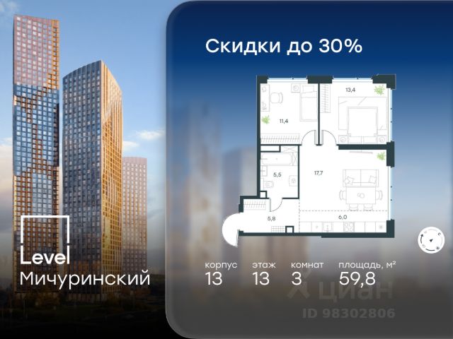 О квартире Продаётся 3-комнатная квартира общей площадью 70.4 кв.м. без отделки. Квартира расположена на 13 этаже корпуса 5.6 в жилом комплексе бизнес-класса "Среда на Лобачевского" в пешей доступности от метро "Аминьевская". О жилом комплексе "Среда на Лобачевского" полностью соответствует критериям современного жилого пространства. Взяв за основу рациональный подход, мы гармонично соединили дизайн, актуальные тренды и функциональность. Продуманный современный экстерьер и функциональные планировки внутри, приватные пространства и разнообразные досуговые зоны для каждого члена семьи — все это "Среда на Лобачевского". Инфраструктура Район отлично развит и наполнен жизнью, здесь уже есть вся необходимая инфраструктура — детские сады, школы, медучреждения, торговые центры, благоустроены парки для прогулок и отдыха, удобен и легкодоступен городской транспорт. Рядом расположены учебные корпуса крупных университетов — МГУ, МГИМО и РАНХиГС. Школы и детские сады в районе занимают высокие позиции в городских рейтингах, поэтому вам не придется беспокоиться о качестве образования детей. Как и об отдыхе: поблизости расположены живописные пруды, реки и парки. Это Парк Олимпийской деревни, Парк имени 50-летия Октября, Мещерский парк и Очаковские пруды. Теперь поставить галочки в еженедельном чек-листе "спорт-прогулки-встречи с друзьями" можно, не покидая любимый район. Особенности Особое внимание в проекте уделяется созданию функциональных пространств не только внутри дома, но и за его пределами. В ландшафтном парке "Среды на Лобачевского" расположены крытые зоны для спокойного времяпровождения, места для активного отдыха и спорта, коворкинг, соседский комьюнити-центр, водные объекты. —Ландшафтный парк во дворе. —Водный сад с зонами отдыха. —Зоны коворкинга. —Дизайнерские гранд-лобби. —Бесключевой доступ. —Подземный паркинг.