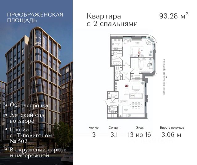 Рассрочка 0% от застройщика. Первоначальный взнос от 20%. Предложение действует до 31 января 2026 года Квартира на 13 этаже в жилом комплексе премиум-класса "Преображенская площадь". Общая площадь: 81.35 кв.м. Проект премиум-класса в историческом районе Москвы. До метро "Преображенская площадь" 3 минуты пешком. Квартиры сдаются без отделки и в свободной планировке, чтобы жители могли оформить пространство с учетом своей индивидуальности. Высота потолков от 3,15м, широкоформатное остекление, 3-5 квартир на этаже. Система Умный дом. Дизайнерские лобби. Внутренний двор 1,5 га функциональное и безопасное пространство для игр, работы и занятий спортом. Пешеходный променад для прогулок. Дома переменной этажности. Есть подземный паркинг. Жилой комлекс находится в окружении парков Сокольники, Черкизовский, Измайловский, заповедника Лосиный остров и ВДНХ, а также вблизи пешеходной набережной. Комфортная удаленность от центра: 7 минут на автомобиле до ТТК, 8 минут до Садового кольца, 25 минут до Кремля.
