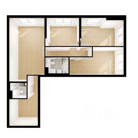 Двухуровневый пентхаус с просторной террасой 24,6 кв.м. Высота потолка - 6,4 м. В кухне-гостиной дровяной камин и французский балкон. Окна выходят на Восток.