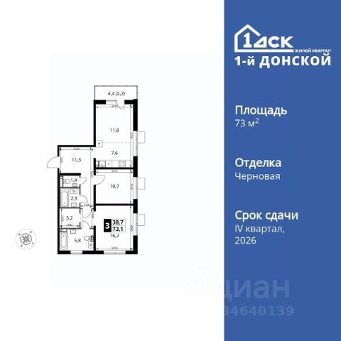 • ✓ В базе Циан 31 3-комнатных квартир на 14 этаже рядом с метро Царицыно