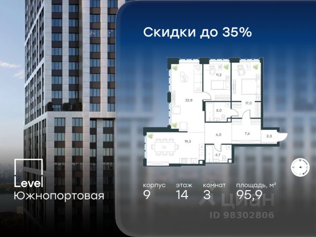 Цена указана с учётом скидки при 100%-й оплате, несубсидированной ипотеке, рассрочке (кроме программы "Рассрочка 0%"). В северной части района Печатники продается 3-комнатная квартира площадью 62.50 кв.м без отделки. Квартира расположена на 14 этаже 20-этажного корпуса 12 в жилом комплексе комфорт-класса Level Южнопортовая (компания Level Group/Левел групп). Отличная транспортная доступность: - 10 мин. пешком до станции метро "Кожуховская"; - 20 мин. пешком до станции МЦК "Дубровка"; - 3 мин. на авто до ТТК; - 13 мин. на авто до Садового кольца; - 15 мин. на авто до Бульварного кольца. Продуманный архитектурный проект: - авторская архитектура от бюро СПИЧ; - уникальные виды на реку, парки и достопримечательности города; - высота потолков в квартирах до 6 м; - окна высотой до 1,87 м с высоким коэффициентом сопротивления теплоотдаче. Расположение: Level Южнопортовая строится в северной части района Печатники - самой приближенной к центру. Здесь будет сформирован новый район "Южный порт", где построят крупный жилой и общественно-деловой центр, аналогичный Москва-Сити. В течение 10-12 лет в этом месте появятся не только жилые дома, но и развитая инфраструктура для жизни и работы. А еще совсем рядом находится набережная Москвы-реки, где планируется построить причалы для речных трамвайчиков и канатную дорогу. Уже сейчас вокруг жилого комплекса работают десятки магазинов и торговых центров, рядом расположено 6 парков, среди которых музей-заповедник "Коломенское". В 10 минутах пешком - 2 муниципальных и 2 частных детских сада, 7 общеобразовательных школ. Внутренняя инфраструктура: Для отдыха жителей в каждом корпусе предусмотрено лобби, оснащенное местами для отдыха, гостевыми санузлами и лапомойками, а в отдельных корпусах - камином. За счёт больших окон и высоких потолков пространства будут наполнены воздухом и светом. На первых этажах жилого комплекса откроются магазины, салоны красоты, фитнес-центр. Для детей строятся собственные детский сад и школа. Благоустройство: Внутренний двор комплекса разработан совместно с бюро GAFA. Основная идея - создать аналог Центрального парка в Нью-Йорке, гармонично сочетая высотные здания и большое изолированное парковое пространство. Вся площадь двора-парка будет огорожена и составит более 2 га, из которых 45% - озеленение. Одним из самых важных ландшафтных элементов здесь станет небольшая речка, наполняющаяся во время дождя. Вокруг неё появится сеть из островов, внутри которых расположатся тематические зоны спорта и отдыха. Технологии и инженерия: - автоматическая передача в управляющую компанию показаний квартирных счётчиков; - телефонная связь, телевидение и интернет на базе оптической мультисервисной сети; - гостевой Wi-Fi в лобби и на территории двора; - единый ключ доступа для входа на территорию комплекса.