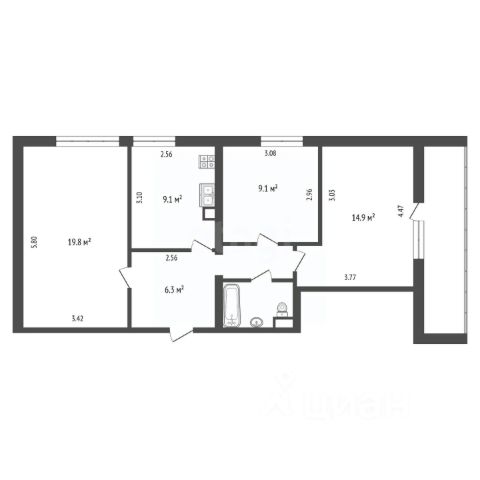 Квартира - распашонка с большой застекленной ложией . Гостиная с эркером 22 м. + две комнаты по 14,5 м., окна на две стороны, кухня 10,5 м