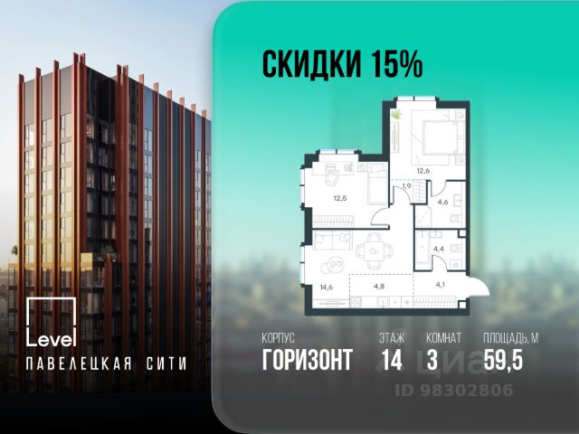 В Даниловском районе столицы (ЮАО) продаётся 3-комнатная квартира площадью 59.50 кв.м без отделки. Квартира расположена на 14 этаже 20-этажного корпуса 'Горизонт' в жилом комплексе бизнес-класса Павелецкая Сити. Высота потолков 3.00м. Престижная локация "Павелецкая Сити" - жилой комплекс бизнес-класса, расположенный в престижном Даниловском районе Москвы, на границе с ЦАО. Проект находится в историческом центре города в окружении парков, Москвы-реки и сформированной инфраструктуры. В пределах 20 минут пешком есть 3 станции метро, а в 5 минутах езды на авто - ТТК и Садовое кольцо. - 15 мин. пешком до метро "Павелецкая"; - 20 мин. пешком до станций "Тульская" и "Серпуховская"; - 8 мин. на авто до Кремля; - 10 мин. на авто до парка Горького и парка "Зарядье"; - 20 мин. на авто до башен "Москва-Сити". Авторская архитектура Архитектурная концепция разработана бюро СПИЧ по индивидуальному проекту. Облик корпусов I и II очередей отсылает к стилистике архитектуры классического Нью-Йорка и золотой эпохи Голливуда. Корпуса IV очереди вдохновлён эстетикой ар-деко в её современном переосмыслении. Благодаря линейному расположению корпусов из большинства квартир будут открываться потрясающие виды на исторический центр города и Москву-реку. Дизайнерские лобби Изысканные интерьеры лобби жилого комплекса отсылают к классическим фильмам золотой эпохи Голливуда. Классика в "Павелецкая Сити" - не имитация, а современное осмысление лучшего в этом стиле. В каждом вестибюле оборудованы стойки ресепшен, комфортные зоны ожидания, гостевые санузлы, мойки для лап животных, колясочные. В корпусах по 3-4 лифта, включая сервисный, с прямым доступом в паркинг. Площадь лобби - от 47,9 до 114,9 кв. м, высота потолков - до 5,46 м. Благоустройство и инфраструктура Для создания благоустройства было приглашено 2 ведущих бюро - ADM и GAFA. Разноуровневое пространство вмещает всё необходимое для качественного досуга: игровые площадки для детей всех возрастов, тропы здоровья для пеших прогулок, крытые аллеи с качелями, места для работы на свежем воздухе, многофункциональные спортивные площадки - воркаут-зоны, столы для пинг-понга, зоны командных игр. Общая площадь закрытого двора - 4,63 га. Комфорт - это когда рядом всё, что нужно для жизни. На первых этажах и в стилобатной части корпусов "Павелецкая Сити" размещены 85 коммерческих помещений, где откроются супермаркеты, кафе, пекарни, аптеки и другие службы сервиса. В составе проекта также предусмотрены собственный фитнес-клуб и развивающий центр Letovo Kids, а также школа на 720 мест и детский сад на 175 мест. Технологии и безопасность - Wi-Fi в лобби и на придомовой территории; - Автоматизированная система контроля и учета ресурсов; - Круглосуточное видеонаблюдение и охрана; - Круглосуточная связь с охраной через приложение, телефон или кол-центр; - Контроль доступа по биометрической системе Face-ID; - Усиленный сотовый сигнал в лифтах и паркинге; - Распознавание номеров автомобилей при въезде/выезде в/из паркинга.
