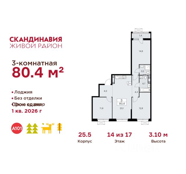 Продаётся 3-комн. квартира площадью 78,7 кв.м на 14 этаже 22 этажного дома (Корпус 56.2 , Секция 1) проекта ПИК Саларьево парк. Светлый просторный подъезд на уровне земли, функциональная планировка, большие окна, c отделкой. Жилой район "Саларьево парк" расположен в Новой Москве, в четырёх километрах от МКАД по Киевскому шоссе. Две станции метро: "Саларьево" и "Филатов луг", — находятся в пешей доступности от проекта. Дойти до них можно за 510 минут. В квартале уже создана качественная среда, где есть абсолютно всё для полноценной жизни, работы и отдыха. Благодаря удобному расположению проекта всё важное будет рядом: детские сады, школы, кафе и рестораны, шопинг в торговых центрах, фитнес и даже аэропорт. Все корпуса в квартале гармонично сочетаются, образуя единую городскую среду. Между собой их объединяет невысокая этажность и натуральная цветовая гамма. Здесь приятно гулять и проводить время на улице всей семьёй. В "Саларьево парке" создана уникальная образовательная среда, включающая в себя шесть школ, рассчитанных на 6 250 учеников. Две из них уже открыты, их посещает 2 300 детей. Также на территории "Саларьево парка" находится 12 детских садов, один из которых с бассейном. Сейчас уже открыты 7 садов. В "Саларьево парке" открыта уникальная игровая площадка — PlayHub "Оригами". Здесь есть ручей, горка-труба и рельефные холмы. Взрослые смогут отдохнуть в уютном кафе, пока дети играют. Также на территории проекта есть SportHub — большая спортивная зона, разделённая по интересам и возрастам. Здесь можно заниматься разными видами спорта: футболом, баскетболом, волейболом и стритболом. Зимой центральную часть площадки превращают в каток. Во дворах-парках жилого квартала есть места для отдыха, детские и спортивные площадки. На первых этажах домов расположены магазины, кафе и полезные сервисы. Также вблизи проекта есть несколько масштабных торговых центров. До ТЦ "Саларис" пять минут пешком, до "Рио", Metro Cash & Carry и "Леруа Мерлен" — пять минут на автомобиле. Артикул 990166 (Застройщик ООО "Специализированный Застройщик "Тирон")