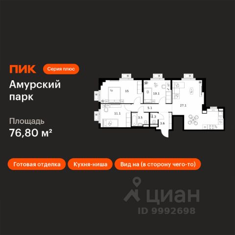 В продаже просторная квартира с кухней-гостиной и двумя спальнями в жилом комплексе бизнес+ класса СТОУН Сокольники. Идеально подойдет молодым парам, которые только планируют пополнение, а также семьям, где малыш уже подрастает. Проект расположен рядом с парком "Сокольники" в пешей доступности от метро. В нескольких километрах от комплекса находятся удобные выезды на ТТК и Садовое кольцо, обеспечивающие быстрый доступ в разные части Москвы. Транспортная доступность: - 10 мин. до м. "Сокольники" и "Электрозаводская" - 12 мин. до парка "Сокольники" - 2 км до ТТК - 6 км до Садового кольца Архитектурная концепция проекта разработана архитектурным бюро WALL. Жилой комплекс состоит из трех разновысотных башен с увеличенной площадью остекления, которая позволит насладиться городской панорамой и видами на парк "Сокольники". Планировки квартир в СТОУН Сокольники создавались с учетом разнообразия современных сценариев жизни в городе. В проекте предусмотрены просторные кухни-гостиные, изолированные мастер-спальни, планировки для семей с детьми разных возрастов. Благодаря грамотному зонированию можно насладиться как уединением, так и временем с семьей. В проекте СТОУН Сокольники большое значение придается бытовому комфорту будущих жителей: потолки высотой 3,1 м, расширенная торговая и социальная инфраструктура, собственный подземный паркинг и частный детский сад на закрытой территории. Во всех входных группах предусмотрены помещения для временного хранения СИМ, лапомойки, гостевые санузлы, а также комнаты матери и ребенка. На каждом этаже появятся колясочные для дополнительного удобства семей с маленькими детьми. STONE - девелопер коммерческой и жилой недвижимости классов бизнес и премиум в Москве с 19-летним опытом. С 2022 года занимает лидирующую позицию на офисном рынке (рейтинг РБК). Сегодня в портфеле девелопера представлено 3 млн кв. м построенных, строящихся и проектируемых объектов, из которых более 1 млн кв. м находятся в стадии строительства. Компания имеет самый масштабный проектный портфель офисной недвижимости класса А на московском рынке (данные NF Group) и возглавляет топ-6 устойчивых девелоперов согласно исследованию F Research от Forbes. В 2023 году частью стратегии по развитию компании стала диверсификация портфеля, в результате которой девелопер провел ребрендинг и запустил направления STONE Office и STONE Dom. В настоящий момент девелопером представлено 16 бизнес-центров класса А, а также 3 жилых комплекса бизнес+ класса. ID.16916