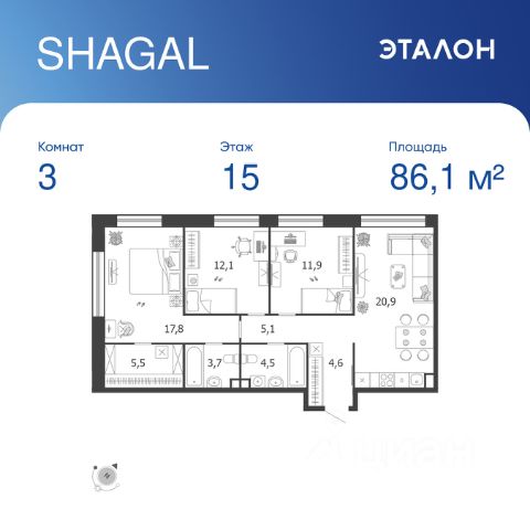 • ✓ В базе Циан 30 3-комнатных квартир на 15 этаже в районе Даниловский в Москве