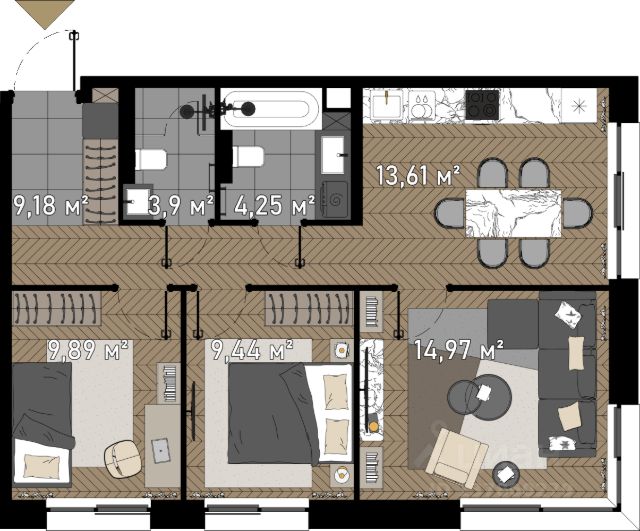 "Зорге 9" — готовые апартаменты бизнес-класса на Ходынке. 10 минут до Москва-Сити. Архитектура: 3 современных корпуса с фасадами в стиле архитектуры Нью-Йорка и с сервисами премиальных отелей, высотой до 23 этажа. Строгие линии, панорамные окна создают ощущение неподдельной роскоши и комфортной жизни в сердце мегаполиса. Проект награжден авторитетной премией European Property Awards. Резиденции: Свободная планировка, небольшая глубина этажа, огромные панорамные окна в пол до 3,6 м и высота потолков до от 3,3 до 4,3 м позволяют реализовать самые смелые концептуальные идеи и создать идеальный интерьер с учетом всех пожеланий. Вдохновляющие виды на город украсят ваш апартамент лучше любой картины. Есть возможность приобретения дизайн-проекта и полной меблировки апартаментов от партнеров девелопера. Расположение: 3 мин. пешком до парка Березовая роща 10 мин. пешком до Ходынского поля 10 мин. до ТЦ Авиапарк 30 минут до Шереметьево 10 мин до Москва-Сити или 1 станция до Москва-Сити 5 минут до ТТК 4 станции метро в шаговой доступности: 6 мин м. Полежаевская (фиолетовая ветка) 7 мин МЦК Зорге (МЦК) 7 мин м. Хорошевская (голубая ветка) 10 мин МЦК Хорошёво (МЦК) Благоустройство: Собственный парк 2 га с амфитеатром и поющими фонтанами. В парке высажено 136 деревьев и более 11 000 кустов и мелких растений из немецких питомников. Площадка для йоги и воркаут-зона со спортивными площадками. Теннисные столы и детский плейхаб Две башни Авторское гранд-лобби В лобби предусмотрена лаундж-зона, чайная с камином, комната для хранения велосипедов и колясок. Доступ по системе FACE ID. В отделке лобби и лифтовых холлов использован декоративный камень итальянского бренда Atlas Concorde Пентхаусы На верхнем уровне комплекса расположены роскошные просторные пентхаусы с высотой потолка до 4,2 метра и панорамными окнами до 3,6 метров, открывающими великолепные виды на столицу. Пентхаусы с выходами на собственные приватные террасы на кровле, площадью от 150 кв. м являются жильем high-уровня, демонстрирующим высокий статус владельца.
