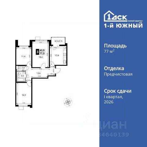 Прямая продажа от застройщика! Жилой Комплекс класса Комфорт Плюс. Продаётся 3-к квартира номер 642 общей площадью 77.9 кв.м. на 15-м этаже 24 этажного здания. Отделка Whitebox. Цена с учётом скидки. Особенности квартиры: - МЦД-5 в пешей доступности - Квартал с южным садом - Свои 3 детских сада и 2 большие школы - Просторная спальня, в которой можно разместить большую кровать. - Распашная планировка - отличное сочетание удобства и свободы. - Раздельный санузел - больше удобства для всех членов семьи. - Просторная кухня - место для семейных ужинов и кулинарных экспериментов. - Линейная кухня - функциональность и практичность в одном решении. - Лоджия - уютное место для отдыха и тишины. Квартира с предчистовой отделкой (White box). Вам не придется заниматься черновыми и трудоёмкими работы, а чистовую отделку и дизайн - сделайте на свой вкус. Информация о комплексе: Одно из преимуществ проектов 1- ДСК большие застекленные лоджии. Другое преимущество честный евро-формат. Во всем проекте предусмотрена система Умный дом. В состав устанавливаемого пакета устройств входит: WiFi реле для управления группами потребителей, беспроводной кран перекрытия с эл. приводом, беспроводной сенсор протечки, Яндекс Станция Мини. Его расположение можно назвать удачным за счет транспортной доступности и близости к природным объектам. По соседству лес, а в каждом дворе плодовые деревья. Весной квартал окутывает бело-розовое облако: это цветут яблони, груши, сливы. К августу в воздух наполняется ароматом созревших плодов. Зимой среди покрытых инеем деревьев протянулась лыжня. Транспортная доступность: - Общественный транспорт: Действующая ж/д станция Булатниково (в перспективе будущая МДЦ D5) в пешей доступности, всего 10-12 минут. - Личный автотранспорт: Удобный выезд на трассу М4-Дон в сторону Москвы и области 850 м, до МКАД - 1 км Внутренняя инфраструктура: Красивые продуманные подъезды - еще одно преимущество проекта 1-й Южный. Вход в сквозные подъезды есть и с улицы, и со двора. Благодаря сплошному остеклению в них всегда светло и уютно. Подъезды расположены на уровне земли, поэтому и молодым родителям с коляской, и жильцам с ограниченными возможностями вход и выход неудобств не доставят. В помещении предусмотрено место под стойку ресепшен с выводом инженерных сетей. Если жильцы решат на общем собрании, что необходим охранник или консьерж, организовать для них рабочее место можно быстро и с минимальными затратами. В подъездах предусмотрены уборные для детей и взрослых. Колясочные в каждом подъезде позволяют поддерживать порядок и чистоту на этажах. На случай прогулки с четвероногим питомцем в непогоду в подъездах устроены лапомойки. Во дворах и на общественных территориях 1-ого Южного столько всего интересного для юных обитателей. Собственные 3 детских сада и 2 больших школы буквально под окнами Изюминка проекта - пешеходный бульвар-дендрарий, он идеален для семейных прогулок. По сторонам прогулочной зоны разместились точки