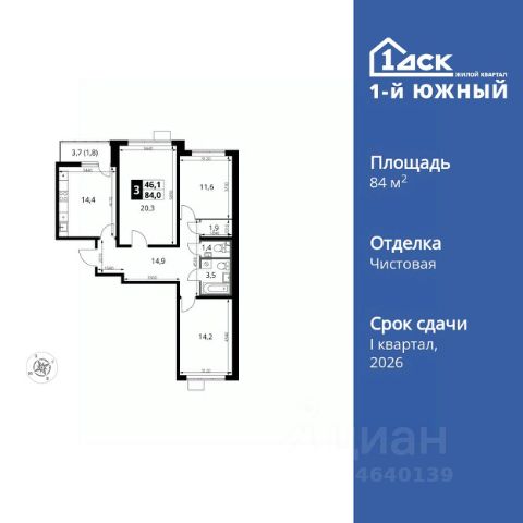 Квартира с кухней-гостиной и тремя спальнями в Квартале Герцена. Особенности планировки: окна на две стороны, второй санузел, гардеробная, предчистовая отделка, постирочная. Квартиру можно купить онлайн. В квартире выполнена отделка "под чистовую". Установлены окна с двойным стеклопакетом, радиаторы с терморегуляторами. На полу цементно-песчаная стяжка. В квартиры заведены кабели для интернета и ТВ. Входная сейф-дверь не требует замены. Организован поквартирный учёт энергоресурсов (водоснабжение, отопление, электричество). Квартал "Герцена" расположен в Бирюлёве Восточном — районе на юге Москвы. Дорога до ТТК займет всего полчаса на автомобиле, до станции метро и ж/д станции "Царицыно" — 13 минут, а до автовокзала "Южные ворота" — 20 минут. До автобусных остановок можно дойти пешком. В 2027-2028 году откроется новая станция метро "Лебедянская", дорога до неё займет всего 18 минут. Общая площадь "Квартала Герцена" составляет 27,3 га. Дома состоят из разноуровневых секций высотой от 6 до 55 этажей с видовыми террасами и балконами. На территории квартала будет построена поликлиника, детский сад на 350 мест и воспитательно-образовательный комплекс на 1075 мест, а также рестораны, клиники, магазины и салоны красоты. Объявление от застройщика. Ипотека, материнский капитал. Обмен — один из способов покупки. Обмен подойдёт, если вы хотите быстро поменять старую квартиру на новую. Получить ипотеку или рассрочку, а также обменять квартиру можно онлайн. Запишитесь на онлайн-презентацию по телефону или на сайте. квартиры в нашей базе: ГРЦ01.2-Ж4.15.14.