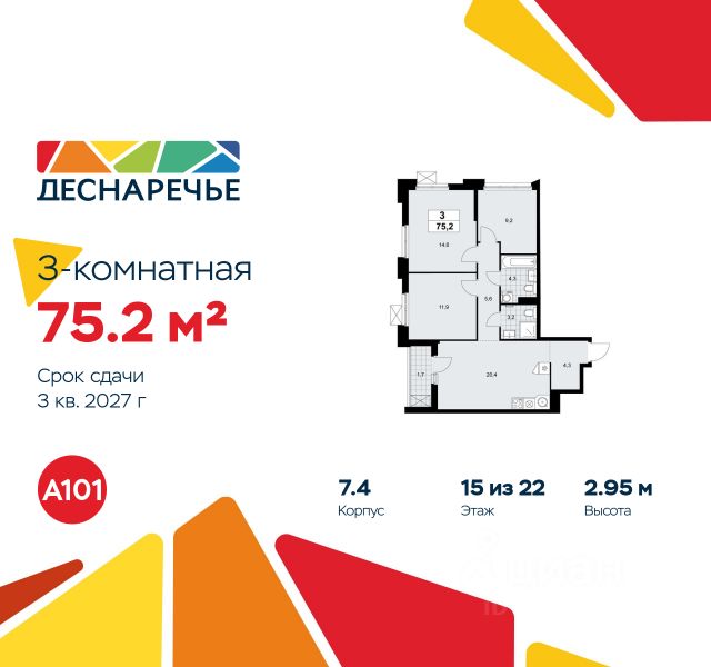 Продается трехкомнатная квартира без отделки в 9 фазе города-парка "Первый Московский". Общая площадь квартиры - 87,7 кв. м, этаж 15 из 19. Срок сдачи - 4 квартал 2026 года. Тип дома - монолитный. ТОЛЬКО ДО 28 ФЕВРАЛЯ: • Рассрочка до 13 месяцев с первоначальным взносом от 10% • Ежемесячный платеж от 50 000 руб. *подробную информацию по скидкам и акциям уточняйте в отделе продаж. Корпус состоит из 2х секций, без отделки. Город-парк "Первый Московский" расположен всего в 7 км по Киевскому шоссе от МКАД на территории Новой Москвы. Из города-парка прямой выезд на Киевское шоссе и трассу Солнцево-Бутово-Варшавское шоссе. ТРАНСПОРТНАЯ ДОСТУПНОСТЬ: - 5 мин. на личном автомобиле или 10 мин. на автобусе 189, 147, 193 до станции метро "Филатов Луг" - 5 мин. на личном автомобиле или 12 мин. на автобусе 863 до станции метро "Саларьево" - 6 мин. на личном автомобиле или 15 мин. на автобусе 333 до станции метро "Рассказовка" РАЗВИТАЯ ИНФРАСТРУКТУРА В ОКРУЖЕНИИ: - общеобразовательная школа 2120 корпуса д1, д7, ш1-ш5 - детский сад 2120 корпуса д2, д9 - школа искусств - городская больница, детская поликлиника, филиал 5 - подстанция скорой помощи 58 и пожарно-спасательный центр 313 - отдел полиции, отдел ГИБДД - торговые центры Столица и Новомосковский - стадион, каток, бассейн - кафе, продуктовые магазины, аптеки, фитнес центры, салоны красоты и пр. БЛАГОУСТРОЙСТВО: - детская площадка для малышей и детей до 12 лет - места отдыха для родителей в непосредственной близости - озеленение территории с учетом зонирования - максимальная близость корпуса к пару Филатов луг ОСОБЕННОСТИ АРХИТЕКТУРЫ: - безбарьерные входные группы - колясочные в каждой входной группе - коммерческие помещения на 1 этаже в двух секциях - кладовые помещения расположены на жилых этажах и на -1 этаже - в каждой секции корпуса по 3 лифта: 2 пассажирских, 1 грузовой - на фасадах предусмотрены корзины для установки внешних блоков кондиционеров - видеонаблюдение установленное в холлах первых этажей, у подъездов и прилегающей территории АВТОРСКИЙ ДИЗАЙН: Входные группы выполнены по авторскому дизайну, оснащены системой "тёплый пол". В каждой входной группе будет располагаться комфортабельная зона ожидания, почтовые ящики с ячейкой для спама, колясочная, акцентные пуфы и столик.