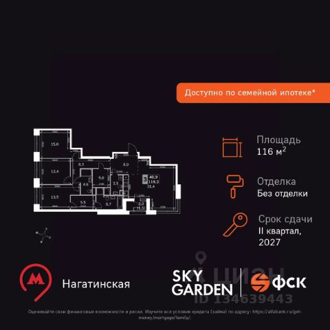 Прямая продажа от застройщика. Продаётся 3-комнатная квартира общей площадью 102.66 м² с предчистовой отделкой в ЖК Сити Бэй, квартале Cliff, на 15-м этаже 15 этажного дома. Cliff by Сити Бэй - это пять клубных домов на первой линии озелененной набережной Реки Москвы. Со стороны южного фасада, обращенного к воде, находится прогулочная зона, организующая входы в жилые секции. Вдоль северного фасада пятой очереди проходит общеквартальный озелененный бульвар с тематическими зонами и дворовыми территориями. В каждой секции предусмотрены сквозные входные группы, а между секциями - проходы для пешеходов, связывающие набережную и бульвар с местами для отдыха внутри квартала. Данное решение позволяет сделать комплекс с доступной и безбарьерной городской средой. Со стороны бульвара у каждой башни для жильцов комплекса расположены приватные потайные дворики, огороженные живой изгородью и интегрированные в общий ландшафт бульвара. Из-за перепадов высот по рельефу, уровень бульвара возвышается относительно уровня дворов, что делает их еще более камерными. Доступ на территорию со стороны бульвара осуществляется через калитку. В каждом здании комбинируется максимальное количество и разнообразие форматов квартир: от видовых квартир с зелеными террасами и лоджиями до квартир малого формата. Входные группы 1-ых этажей поистине уникальные пространства. Лобби имеют высоту потолков 5 - 6 м и панорамные окна. В отделке используются дорогие натуральные материалы:шпон дерева, мрамор, металл и др. Одноуровневый паркинг с дополнительными функциями: - Велопарковка, - Места для подкачки шин, - Зоны погрузки и разгрузки, - Зарядки для электрокаров, - Кладовыми помещениями. Концепция жилого комплекса Сити Бэй - настоящий город в городе с отлично развитой инфраструктурой и собственной благоустроенной набережной. На территории жилого комплекса расположено пять кварталов - Atlantic, Pacific, Indian, North, Cliff. Жилой квартал Сити Бэй отличается оригинальной концепцией и выделяется среди других проектов такими характеристиками как: - Архитектура, - Виды из окон, - Природное окружение, вызывая гордость у жителей и восхищение у прохожих. Вся жизнь района Покровское-Стрешнево строится вокруг водных объектов: - Пойма реки Сходни с уникальной экосистемой, - Речка Химка и Химкинское водохранилище, - Москва-река, - Канал имени Москвы. Кругом вода, и местные с удовольствием этим пользуются. А сразу за рекой - центр водного спорта в Строгино с вейк-парком и яхт-клубами. Главные транспортные артерии района: - Волоколамское шоссе, - Таганско-Краснопресненская линия метро и МЦД-2. Компания MR предлагает своим клиентам специальные условия приобретения квартир в рамках программ ипотечного кредитования от банков-партнеров.