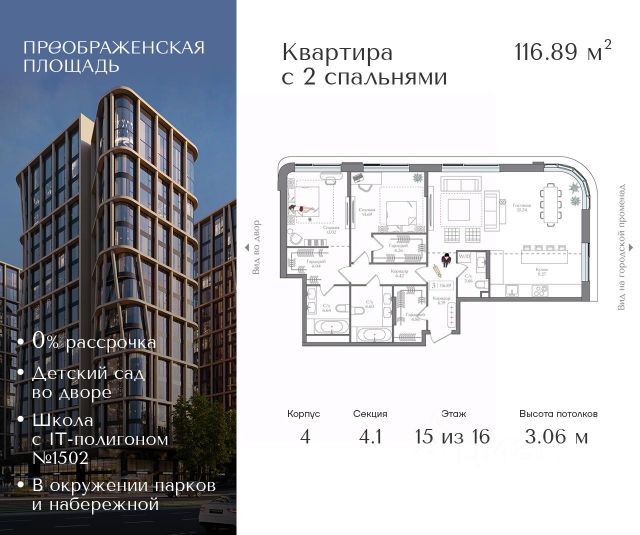 Продаются 3-к апартаменты площадью 56.27 кв.м. на 15-м этаже 20 этажного дома в EVOPARK Сокольники от ГК ОСНОВА. "EVOPARK Сокольники" расположен в историческом районе Преображенское, в 300 метрах от парка Сокольники. "EVOPARK Сокольники" расположен на набережной реки Яуза и находится в 15 минутах пешком от м. "Преображенская площадь". Быстрый выезд на главные транспортные магистрали (ТТК и ул. Стромынка) позволит добраться на личном авто до центра Москвы за полчаса. "EVOPARK Сокольники" - это два корпуса переменной этажности (максимально 20 этажей) с апартаментами бизнес-класса и подземным паркингом. В проект благоустройства входит двор с ландшафтным дизайном, который предусматривает зоны тихого отдыха, лестницу с амфитеатром, детские площадки и игровые площадки для детей разных возрастов, зеленые зоны отдыха. Для самых активных здесь оборудована work-out площадка. Два корпуса соединены между собой аркой с видом на парк Сокольники. На уровне 13-18 этажей располагаются видовые террасы с ограждениями из безопасного стекла, где можно насладиться шикарными видами на парк Сокольники и самыми красивыми закатами.