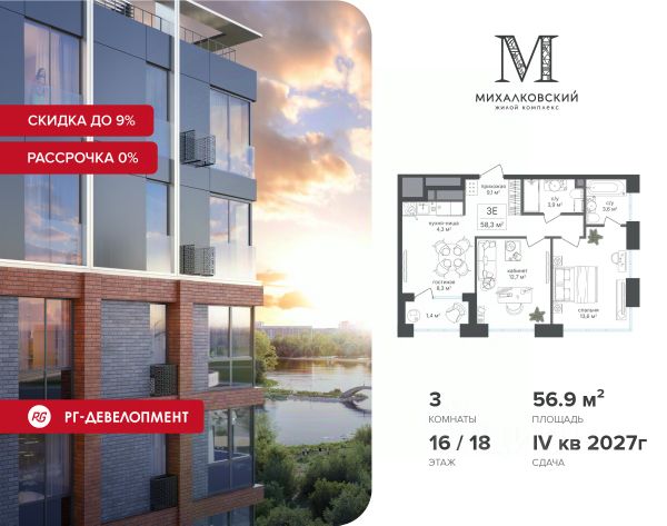 При приобретении квартиры доступна беспроцентная рассрочка с первым платежом от 30%. У покупателя также есть право воспользоваться скидкой в размере 5% от полной стоимости квартиры. - Первый платеж составляет 30% от стоимости объекта и вносится при заключении ДДУ - Второй платеж в размере 30% от стоимости объекта вносится через 6 месяцев с даты заключения ДДУ - Остаток 20% через 12 месяцев с даты заключения ДДУ, но не позднее 30.06.2027 - Остаток 20% не позднее 30.06.2027 - Действует на приобретение квартир в корп. 2, 7 Продаётся 3-к квартира 67,4 кв.м. в ЖК "Михалковский" на 16-м этаже 20 этажного дома. Скидка 9% при покупке квартиры! Ипотека для каждого! Полная стоимость кредита от 12,380% до 18,537%. Ставка от 0,11% в АО "Альфа-Банк", ген. лицензия ЦБ РФ 1326 от 16.01.2015. Ставка фиксируется на первые 12 месяцев, далее полная стоимость кредита от 22,022% до 24,599% ставка 21,59%. Первоначальный взнос — от 20,1% от стоимости квартиры. Срок кредитования — от 4 до 30 лет. Компания "РГ-Девелопмент" предоставляет скидку на квартиры в жилом комплексе. Акция действительна до 15.04.2026 включительно. Для того чтобы воспользоваться предложением, необходимо подписать договор на приобретение недвижимости до 15.04.2026 включительно. Действует программа "Растет семья - растет и квартира". Компания "РГ-Девелопмент" вошла в ТОП-10 девелоперов по объёму введённого жилья в "Старой Москве" по итогам 2025 года. Прямая продажа от застройщика! Квартиры без отделки. Срок сдачи IV кв. 2027г. Особенности проекта: Завораживающие виды Красивое благоустройство Уникальная локация для Москвы (рядом Головинский парк, пруды, усадьба Михалково) Рядом с центром В проекте присутствует: архитектура голландского бюро MLA+, зеленые зоны, транспортная доступность, благоустроенная территория, подземный паркинг, детский сад и выход на Головинский парк с пятью прудами. Название комплекса указывает на одну из его черт - соседство с имением Михалково. Позвольте себе жить в месте, где проводили свой досуг династии Дашковых и Паниных.