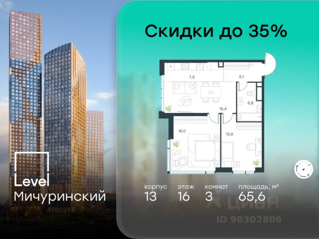 Прямая продажа от застройщика. Продаётся 3-комнатная квартира общей площадью 81.60 м² с предчистовой отделкой в ЖК VEER на 16-м этаже 59 этажного дома. Жилой комплекс бизнес-класса VEER от компании MR — это футуристичный мультиквартал, расположенный в престижной локации на западе Москвы. Благодаря переменной высоте башен — двух 22-этажных, 46-этажной и двух 59-этажных — возникает динамичность в силуэте комплекса, а его яркий образ вносит разноплановость в архитектурный пейзаж района. Расположение и транспортная доступность: • VEER удобно расположен в непосредственной близости от Кутузовского проспекта, обеспечивая быстрый доступ к центральным районам Москвы • Комплекс находится непосредственно напротив самого большого природного заказника в Москве - парка "Долина реки Сетунь", а за семь минут можно доехать до памятника садово-паркового искусства, Троекуровского леса. • Всего в 15 минутах - центр города, самая престижная бизнес-школа управления России "Сколково", дом творчества "Переделкино". • 18 минут пешком до м. "Давыдково" • Открытие новых станций метро в шаговой доступности в будущем Инфраструктура: Разнообразить свой день резиденты VEER смогут также проводя больше времени на свежем воздухе. Двор разделен на 4 зоны разных эмоций и действий, которые пересечены и соединены веерными прогулочными маршрутами: • Спортивная площадка устроена в глубине "Кленовой рощи" • В "Чайном домике" будет создан навес с утеплением для отдыха в любую погоду • Площадки для детей воплотятся в "Волшебный лес" с цветами, зеркалами и световым дизайном • "Центральная площадь" устроена у водного оазиса живописного пруда. Компания MR предлагает своим клиентам специальные условия приобретения квартир в рамках программ ипотечного кредитования от банков-партнеров.