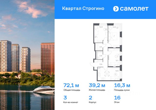 • ✓ В базе Циан 2 3-комнатных квартир на 16 этаже рядом с метро Липовая Роща