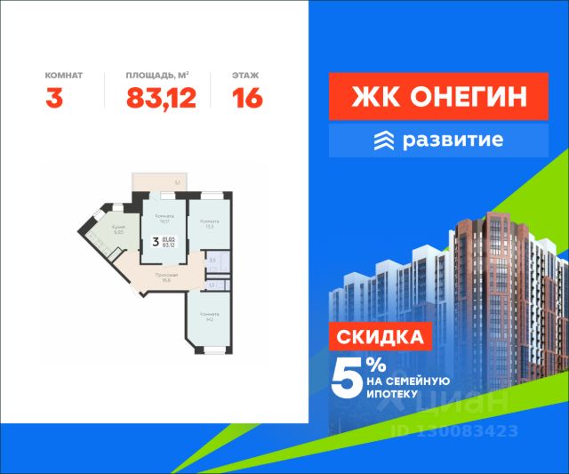 Продается квартира площадью 80.88 кв. м с отделкой White box. Квартира находится на 16 этаже 22 этажного дома, в новом жилом комплексе "Онегин", расположенном по адресу: Московская область, г. Подольск, ул. Садовая 3, корп. 1. "Онегин" - комфорт в деталях. Проект от федерального застройщика "Развитие" расположился в центральной части Подольска - города-спутника столицы. Жилой комплекс состоит из 10 секций переменной высоты (20 - 22 этажа) и включает в себя 510 квартир, собственную инфраструктуру, закрытый благоустроенный двор-парк. Прекрасный баланс города и природы - ЖК "Онегин". Расположение Пешком: - 5 мин. до остановки "Красная горка"; - 10 мин. до склона у реки Пахры; - 30 мин. до центра Подольска; - 30 мин. до МЦД "Силикатная" (или 15 мин. на автобусе). На автомобиле: - 3 мин. до проспекта Ленина с выездом на Симферопольское шоссе; - 10 мин. до МЦД-2 "Подольск"; - 10 минут до горнолыжного комплекса "Красная Горка"; - 30 мин. до ст. метро "Бульвар Дмитрия Донского"; - 35 мин. до МКАД. Благоустройство - большой приватный двор-парк; - всесезонная растительность: взрослые деревья, кустарники, травы, цветочные клумбы; - декоративные камни и многоуровневое освещение для уютной атмосферы; - мощеные тропинки с деревянными скамейками для отдыха; - площадки для малышей с безопасным покрытием; - яркие игровые комплексы для подростков; - спортивный корт для футбола и баскетбола; - многофункциональная воркаут-зона; - уютные места для чтения или работы в тишине. Комфорт и безопасность - монолитно-кирпичные дома с высокой тепло- и шумоизоляцией; - витражные окна, наполняющее квартиры и подъезды светом; - стильные и просторные входные группы; - вход в подъезд без ступенек и перепадов, комфортный доступ для родителей с колясками, пожилых людей и маломобильных жителей; - на первом этаже предусмотрены просторные колясочные; - 2 пассажирских лифта и 1 грузовой в каждом подъезде; - система охраны и круглосуточное видеонаблюдение. Инфраструктура и окружение - подземный паркинг на 262 машино-места, спуститься к автомобилю можно прямо с вашего этажа на лифте - быстро и удобно в любую погоду; - гостевые парковочные места на прилегающей территории; - кладовки расположены на -1 и -2 этажах, хранить сезонные вещи легко и безопасно: доступ - напрямую с вашего этажа на лифте; - школы, частные и муниципальные детские сады, магазины, кафе и все сервисы бытовых услуг в шаговой доступности; - на первых этажах - коммерческие помещения, все необходимое рядом; - 3 фитнес-центра, стадионы "Зенит" и "Подолье", 4 взрослых и детских бассейна; - торгово-развлекательные центры "Капитолий", "Галерея", "Кварц"; - парк культуры и отдыха имени В. Талалихина, музей-заповедник "Подолье", горнолыжный комплекс "Красная Горка", исторические усадьбы "Остафьево" и "Дубровицы" и другие места для семейного отдыха.