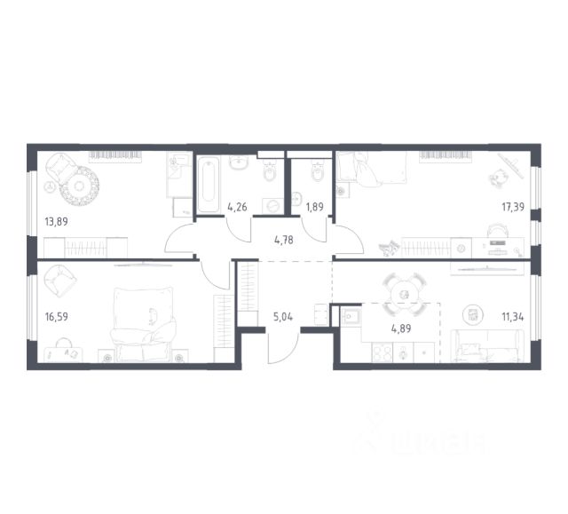 Квартира с кухней-гостиной и тремя спальнями в Квартале Герцена. Особенности планировки: окна на две стороны, предчистовая отделка. Квартиру можно купить онлайн. В квартире выполнена отделка "под чистовую". Установлены окна с двойным стеклопакетом, радиаторы с терморегуляторами. На полу цементно-песчаная стяжка. В квартиры заведены кабели для интернета и ТВ. Входная сейф-дверь не требует замены. Организован поквартирный учёт энергоресурсов (водоснабжение, отопление, электричество). Квартал "Герцена" расположен в Бирюлёве Восточном — районе на юге Москвы. Дорога до ТТК займет всего полчаса на автомобиле, до станции метро и ж/д станции "Царицыно" — 13 минут, а до автовокзала "Южные ворота" — 20 минут. До автобусных остановок можно дойти пешком. В 2027-2028 году откроется новая станция метро "Лебедянская", дорога до неё займет всего 18 минут. Общая площадь "Квартала Герцена" составляет 27,3 га. Дома состоят из разноуровневых секций высотой от 6 до 55 этажей с видовыми террасами и балконами. На территории квартала будет построена поликлиника, детский сад на 350 мест и воспитательно-образовательный комплекс на 1075 мест, а также рестораны, клиники, магазины и салоны красоты. Объявление от застройщика. Ипотека, материнский капитал. Обмен — один из способов покупки. Обмен подойдёт, если вы хотите быстро поменять старую квартиру на новую. Получить ипотеку или рассрочку, а также обменять квартиру можно онлайн. Запишитесь на онлайн-презентацию по телефону или на сайте. квартиры в нашей базе: ГРЦ01.1-Ж5.16.1.