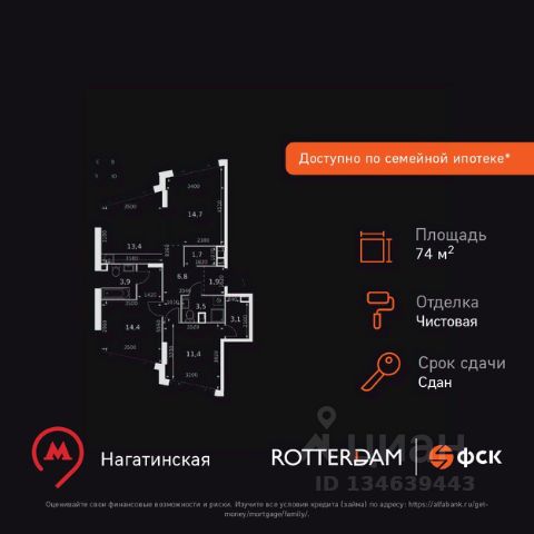 Арт. 118261603 Доброго времени суток! Вашему вниманию предлагается 3-х комнатная квартира: этаж: 16, окна на набережную и Москва-реку площадь: 70,3 кв.м. ремонт: white box от застройщика изолированная планировка: мастер - спальня для родителей с окном в ванной комнате, детская, большая кухня - гостиная и лоджия, которая предусмотрена под кабинет. White box подразумевает, что в квартире: • возведены и выровнены стены; • устроены разводка канализации и ввод воды в кухню и санузел с возможностью самостоятельно сделать разводку под выбранное оборудование; • сделана разводка электричества по квартире; • установлены подрозетники; • есть подключение отопительных приборов и вывод под центральное кондиционирование; • осуществлена разводка под систему "Умная квартира". ЖК Роттердам - это жилой комплекс бизнес-класса на берегу Москвы-реки, в котором находят отражение все основные жизненные ценности современной Европы. Мобильность, здоровый образ жизни, идеальный баланс между работой и личной жизнью, индивидуальность и неповторимость образов и решений — ключевые ценности европейского стиля жизни, заложенные в новый проект ФСК на Нагатинской набережной. транспортная доступность: до метро Нагатинская 8 минут пешком до центра Москвы 20 - 25 минут на автомобиле до ТТК 2,2 км инфраструктура района: спортивно - образовательная академия "Академия Будущего" семейный бойцовский клуб "FightRepublic" школа 507, 1375, 630 детский сад Домисолька, Discovery и государственные развитие и отдых: горнолыжный комплекс "Кант", Коробковский сад, парк "Коломенское", парк "Садовники", Тюфелева Роща юридическая информация: 1 взрослый собственник без использования мат.капитала полная стоимость в договоре юридическое сопровождение сделки покупали у застройщика в 2023 году квартиру можно взять в ипотеку со ставкой 12,25% (получите расчет ипотеки за 5 минут) Приглашаю на просмотр квартиры, звоните!