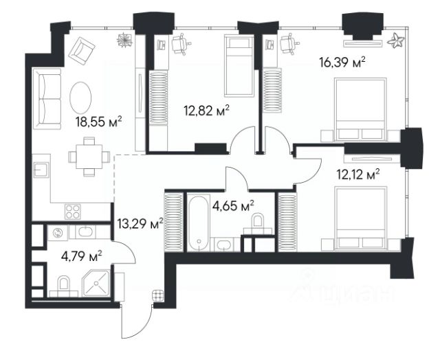 • ✓ В базе Циан 7 3-комнатных квартир на 16 этаже в районе Нагатино-Садовники в Москве