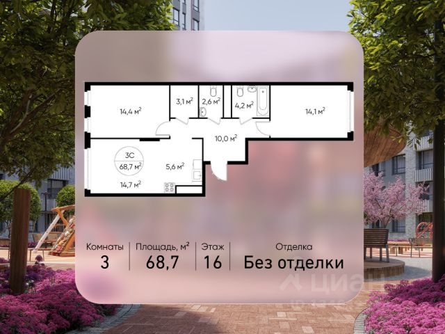Продается трехкомнатная квартира в городе-парке "Переделкино Ближнее". Общая площадь квартиры - 89,4 кв. м, этаж 16 из 17. Срок сдачи - 3 квартал 2026 года. Тип дома - монолитный. ТОЛЬКО ДО 31 МАРТА выгодные условия на приобретение квартиры в ипотеку или рассрочку. Звоните - и мы подберем оптимальное предложение под ваш запрос! Город-парк "Переделкино Ближнее" расположен в 8 км от МКАД по Боровскому шоссе. ТРАНСПОРТНАЯ ДОСТУПНОСТЬ: - 10 минут пешком до МЦД-4 "Мичуринец" - 15 минут пешком до станции метро "Рассказовка" Солнцевской линии - 10 минут на машине до станции метро "Филатов Луг" Сокольнической линии - 30 минут до центра Москвы - Прямой выезд на дорогу Солнцево-Бутово-Варшавское шоссе, минуя жилую застройку всего ЖК БЛАГОУСТРОЙСТВО: 18 фаза строительства уникальна своим расположением - в шаговой доступности парк на Лукинской улицы, река Алёшинка. На территории 18 фазы строительства будут построены 2 монолитных жилых корпуса повышенного комфорта разной этажности 7, 17 этажей. А также многоуровневый паркинг на 300 м/мест. Вход в жилую часть корпусов каждой секции осуществляется с двух сторон - с наружного контура жилого дома и со стороны дворового пространства, предусмотрен безбарьерный доступ. ВНУТРЕННЯЯ ИНФРАСТРУКТУРА: В рамках данной фазы, для жителей предусмотрено создание пространства, свободного от машин - благоустроенные огороженные дворы с современными детскими и спортивными площадками, разделенными на зоны по возрастам. На территории проекта есть все необходимые объекты социальной и бытовой инфраструктуры: детские сады, школы, магазины, паркинги, аптеки, поликлиники, пожарная часть и др. АВТОРСКИЙ ДИЗАЙН: Современный монолитный дом переменной этажности 7 и 17 этажей. На фасаде предусмотрены корзины для установки кондиционеров. Входные группы домов выполнены по авторскому дизайну. Колясочные располагаются при входе, велопарковка на -1 этаже.