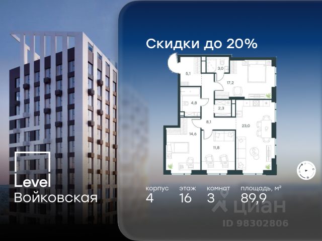Прямая продажа от застройщика. В жилом квартале, расположенном в Войковском районе Москвы, продаётся 3-комнатная квартира площадью 78.1 кв.м без отделки. Квартира расположена на 16 этаже 35-этажного дома, корпус 1, в жилом квартале бизнес-класса INJOY. INJOY отделен от Ленинградского шоссе исторической застройкой и расположен всего в одном километре от магистрали: это возможность быстро добраться до центра или в любой район города по МКАДу или ТТК. Для автомобилей в INJOY — удобный подземный паркинг с доступом на лифте. Здесь же расположены кладовые площадью от 2,1 до 9 кв. м. Усилители сотового сигнала в лифтах и паркинге позволяют вести важные разговоры, не прерываясь на полуслове. Десятки мест отдыха вокруг INJOY дарят детям и взрослым запоминающиеся развлечения в любую погоду: от прогулок по паркам и природным зонам до интересного досуга в кругу семьи или друзей. 10 минут до парка Покровское-Стрешнево 12 минут до усадьбы Михалково 15 минут до Химкинского водохранилища 7 минут до ТРЦ "Метрополис" INJOY расположен в развитом сформировавшемся районе, что обеспечивает жителям обширную инфраструктуру в пешей доступности. МЦК "Балтийская" - 200 м Ленинградское шоссе - 1 км м. Войковская - 1 км ТТК - 7 км В проекте INJOY три очереди, разновидность которых формирует силуэт живого мегаполиса. Архитекторы международного бюро AI Studio придали индивидуальность каждому корпусу, чтобы все уголки INJOY обрели особенный характер. Планировки и форматы квартир уникальны: пентхаусы, квартиры с террасами, мастер-спальнями, выходом на променад, угловым остеклением, лоджиями, гардеробными, кладовыми и постирочными. Внутренний двор INJOY продолжает общую концепцию благоустройства и включает в себя: три детские площадки для разных возрастов, зону work-out, природную озеленённую зону, променад с зонами для релакса, йоги и амфитеатром с арт-объектами. Закрытый двор, видеонаблюдение и контроль доступа обеспечивают безопасность каждому жителю комплекса. Стоимость квартиры - 34271300 Р. Срок сдачи - 1 квартал 2027. Более подробную информацию по объекту уточняйте по телефону и в отделе продаж.