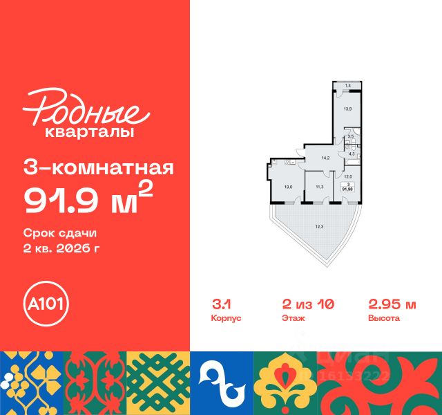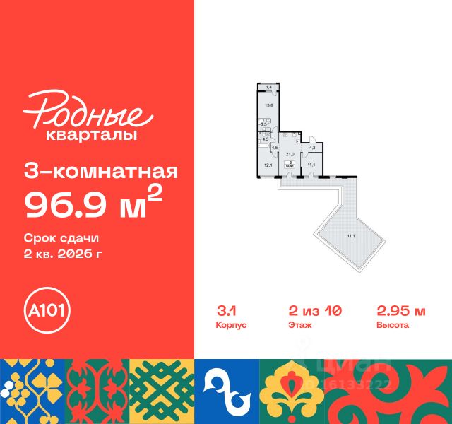 Продается трехкомнатная квартира с отделкой в 9 фазе города-парка "Первый Московский". Общая площадь квартиры - 87 кв. м, этаж 2 из 19. Срок сдачи - 2 квартал 2027 года. Тип дома - монолитный. ТОЛЬКО ДО 28 ФЕВРАЛЯ: • Рассрочка до 13 месяцев с первоначальным взносом от 10% • Ежемесячный платеж от 50 000 руб. *подробную информацию по скидкам и акциям уточняйте в отделе продаж. Корпус состоит из 3 секций. Город-парк "Первый Московский" расположен всего в 7 км по Киевскому шоссе от МКАД на территории Новой Москвы. Из города-парка прямой выезд на Киевское шоссе и трассу Солнцево-Бутово-Варшавское шоссе. ТРАНСПОРТНАЯ ДОСТУПНОСТЬ: - 5 мин. на личном автомобиле или 10 мин. на автобусе 189, 147, 193 до станции метро "Филатов Луг" - 5 мин. на личном автомобиле или 12 мин. на автобусе 863 до станции метро "Саларьево" - 6 мин. на личном автомобиле или 15 мин. на автобусе 333 до станции метро "Рассказовка" РАЗВИТАЯ ИНФРАСТРУКТУРА В ОКРУЖЕНИИ: - общеобразовательная школа 2120 (корпуса д1, д7, ш1-ш5) - детский сад 2120 (корпуса д2, д9) - школа искусств - городская больница, детская поликлиника, филиал 5 - подстанция скорой помощи 58 и пожарно-спасательный центр 313 - отдел полиции, отдел ГИБДД - торговые центры "Столица" и "Новомосковский" - стадион, каток, бассейн - кафе, продуктовые магазины, аптеки, фитнес-центры, салоны красоты и пр. БЛАГОУСТРОЙСТВО: - дворы без машин - разнообразные детские площадки и развивающие комплексы - детские площадки разделены по возрастным группам - максимальная близость корпуса к парку "Филатов луг" - озеленение территории с учетом зонирования, островками для отдыха ОСОБЕННОСТИ АРХИТЕКТУРЫ: - безбарьерные входные группы - велопарковка на -1 этаже - колясочные в каждой входной группе - коммерческие помещения на 1 этаже в трех секциях - кладовые помещения расположены на жилых этажах и на -1 этаже - в каждой секции корпуса - 4 лифта: 2 пассажирских, 2 грузовых - видеонаблюдение установленное в холлах первых этажей, у подъездов и на прилегающей территории АВТОРСКИЙ ДИЗАЙН: Входные группы выполнены по авторскому дизайну, оснащены системой "тёплый пол". В каждой входной группе будет располагаться комфортабельная зона ожидания, почтовые ящики с ячейкой для спама, колясочная, акцентные пуфы и столик.
