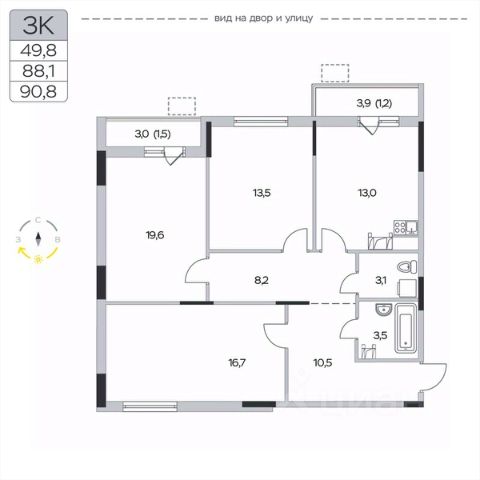 Продаётся 3-комнатная квартира 839, площадью 68,89 м², на 2 этаже в ЖК "Императорские Мытищи" корпус 1.1. Стоимость — от 13179291 руб. Квартира без отделки, планировка угловая, окна во двор.