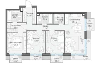 Старт продаж в новом клубном доме Климашкина 7/11 Продаётся 3-комнатная квартира общей площадью 156.10 м². Климашкина 7/11 — Клубный семейный дом с ультрасовременной архитектурой, в которую оправлена антикварная редкость — полностью сохраненный фасад особняка XIX века. В проекте всего 46 резиденций — ни одной лишней, ни одной случайной. На этаже — от двух до четырех квартир, что создает исключительную приватность, редкую даже для элитного сегмента. Окружение Расположенный в тихом интеллигентном квартале Пресненского района, Клубный дом Климашкина 7/11 соседствует со знаковыми зданиями старой Москвы Пресненского района. Всего в нескольких шагах находится памятник конструктивизма Центр Зотов, мастерская Зураба Церетели и Римско-католический кафедральный собор, а также в пешей доступности — Музей русского импрессионизма, парк Красная Пресня и Патриаршие пруды, Театр Сатиры и Московский Зоопарк. Транспортная доступность — 5 минут до Садового кольца; — 5 минут до ТТК; — 10 минут до Делового центра; — 12 минут до Белорусского вокзала; Внутренняя инфраструктура — Просторное дизайнерское лобби с потолками до 5 м; — Собственный приватный ландшафтный сад от L. BURO; — 2-х уровневый подземный паркинг на 55 машино-мест; — Собственный SPA и фитнес-центр; — Умные системы безопасности и сервис самого высокого уровня.