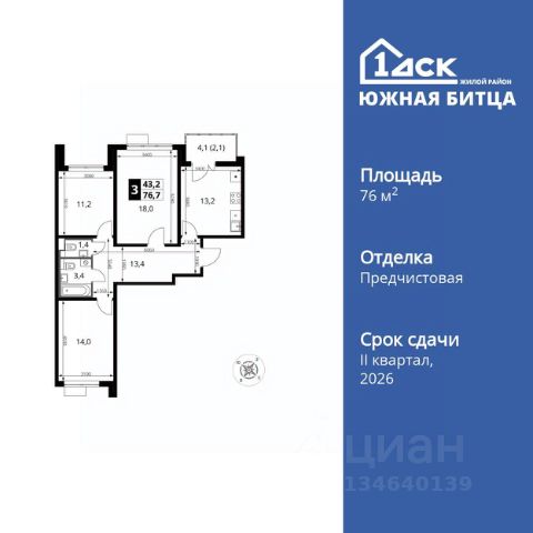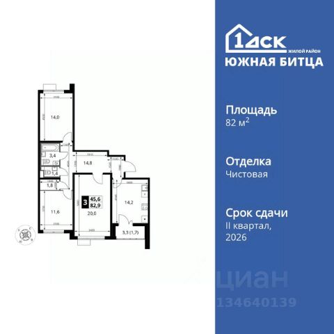 • Кухня-гостиная — 44,8 м² (кухня 14.3 м²)