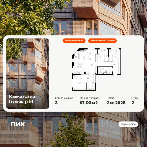 Прямая продажа от застройщика! Жилой Комплекс класса Комфорт Плюс. Продаётся 3-к квартира номер 535 общей площадью 76.7 кв.м. на 2-м этаже 24 этажного дома. Без отделки. Цена с учётом скидки! Особенности квартиры: - МЦД-5 в пешей доступности - Квартал с собственной набережной - Свои 2 детских сада и школа - Мастер-зона с гардеробной. Просторное место для отдыха и удобного хранения вещей. - Просторная спальня, в которой можно разместить большую кровать. - Угловая планировка - больше пространства для ваших идей. - Увеличенное количество окон - дополнительное освещение и свежий воздух. - Раздельный санузел - больше удобства для всех членов семьи. - Гардеробная - удобство для хранения и организации вещей. - Ниша под шкаф - компактное и удобное место для вещей. - Лоджия - уютное место для отдыха и тишины. Информация о комплексе: Комплекс 1-й Донской расположен в 7 км от МКАД по трассе М-4 Дон. В нем сочетаются все плюсы комфортной городской среды и природного окружения. В проекте достаточно большой процент квартир, выходящих на 2-3 стороны света. Секции-маяки формируют у зданий визуальную L-форму, что придает застройке структуру и ритмику объемов. На ощущение динамики работает и разная этажность зданий. Теплая цветовая палитра фасадов отражает природу Дона. Вечерами дома преображаются благодаря архитектурной подсветке, выгодно выделяясь на городском фоне. Природа оказывает положительное влияние на человека на всех уровнях восприятия: через зрение, запахи, звуки, тактильные ощущения. Неподалеку от ЖК Первый Донской: Ермолинский парк, Видновский лесопарк, Жуковский парк Транспортная доступность: Комплекс удобно расположен в 7 км от МКАД по трассе М-4 Дон (через Видное). Расстояние до Каширского шоссе составляет 12 км. Добраться до метро и центра Москвы позволяет развитая сеть маршрутов общественного наземного транспорта. Действующая ж/д станция Калинина Павелецкого направления в 15-17 минутах ходьбы (МЦД-5 в 2025-2026 гг). Внутренняя инфраструктура: Проект 1-й Донской соседствует с бурно развивающимся районом, основная инфраструктура которого уже сложилась. В строительстве современных жилых комплексов в округе есть свои плюсы: здесь формируется продуманная и комфортная городская среда. Что касается внутренней инфраструктуры, на территории квартала будут расположены собственные муниципальные 2 детских садика и школа, которые помогут совместить приятное с полезным. Территория комплекса пронизана целой сетью живописных пешеходных маршрутов, позволяющих попасть в любой уголок района. Основные пути, как водится, "торговые". Они проходят вдоль магазинов, кафе и других представителей коммерции и отделяются от проезжей части зеленой "фито" - стеной. Среди крупных социальных объектов предусмотрены своя поликлиника и торговый центр с примыкающей площадью для общественных мероприятий. Уют начинается с продуманного подъезда. Сквозные подъезды наполнены светом благодаря сплошному остеклению. Вход в них есть и с улицы, и со