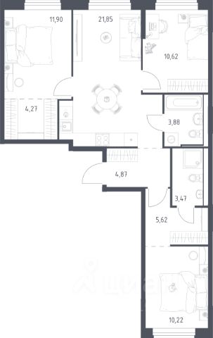 Продаётся 3-комнатная квартира 313, площадью 87,50 м², на 2 этаже в ЖК "Бригантина" корпус 1. Стоимость — от 22991071 руб. Квартира без отделки, планировка угловая, окна во двор.