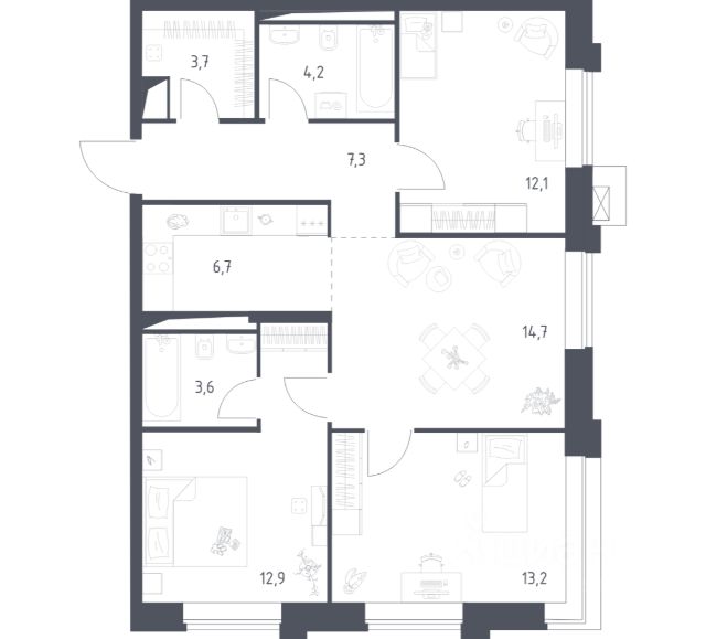 Старт продаж новой очереди! Продаётся 3-комнатная квартира общей площадью 90.94 м² без отделки в ЖК VEER на 2-м этаже 38 этажного дома. VEER.2 — вторая очередь футуристичного квартала бизнес-класса VEER. Это новая экосистема в престижном Западном округе Москвы, поражающая масштабностью внутренней инфраструктуры. ЖК находится всего в 5 минутах от Кутузовского проспекта и в 15 минутах от Сколково. Ансамбль из четырех стеклянных башен с доминантой в 237 метров разработан по принципу современного урбанизма и выражен в лаконичных объемах — параллелепипедах со сглаженными углами, которые придают зданиям утонченный вид. Расположение и транспортная доступность: • Образовательный комплекс в составе топовой школы, состоящий из двух зданий: основное на 1500 школьных и 450 дошкольных мест, отдельное здание детского сада на 300 мест. • Парк "Долина реки Сетунь" площадью более 700 гектаров • Рядом МГУ, МГИМО, РАНХиГС и Академия ФСБ • 15 минут по Кутузовскому проспекту до ужина в центре с видом на Москву-реку • 18 минут пешком до м. "Давыдково" • Открытие новых станций метро в шаговой доступности в будущем Инфраструктура: Двор в VEER.2 — это ассиметричные холмы, каменные "лабиринты", зеленые ковры и хвойные островки с единой живой экосистемой. Здесь есть все: • Павильон умиротворения Место отдыха под навесом в спокойной части двора, окруженное деревьями. • Активная тропа Тактильная дорога из камней разного диаметра для расслабляющих прогулок. • Бизнес-гарден Оборудованное пространство для работы на свежем воздухе со столом и встроенными розетками. • Детская площадка Двухуровневая площадка "Ботаника" с песочницей, переговорной трубой и горкой "Дружба". Компания MR предлагает своим клиентам специальные условия приобретения квартир в рамках программ ипотечного кредитования от банков-партнеров.