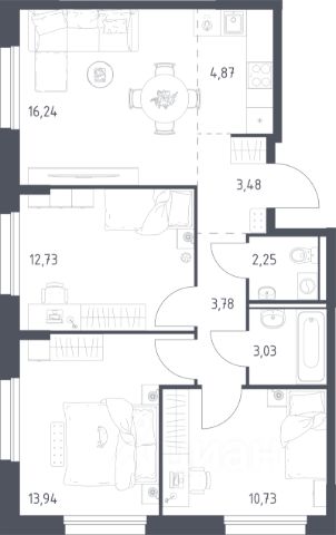 Продаётся 3-комнатная квартира в строящемся доме (Корпус 11.1), срок сдачи: IV-кв. 2028, общей площадью 75.56 кв.м., на 2 этаже. Расположение, транспортная доступность Жилой комплекс "Прибрежный Парк" возводится на берегу реки Пахра, рядом с деревней Павловское и селом Ям, в 9 км от МКАД. Рядом проходят Каширское шоссе и трасса М-4, по которой до центра Москвы можно доехать всего за 15 минут. В десяти минутах ходьбы располагается ж/д станция "Ленинская", от которой за 40 минут можно добраться на электричке до Павелецкого вокзала. В 2024 году эта станция станет частью МЦД-5. Путь до ближайшей станции метро "Домодедовская" на общественном транспорте займёт примерно полчаса. Инфраструктура Внутренняя инфраструктура ЖК "Прибрежный Парк" будет включать три детских сада на 800 мест, школу на 1650 учеников и собственную поликлинику. На первых этажах зданий разместятся коммерческие помещения - магазины, аптеки, салоны красоты, досуговые центры. На территории комплекса будет построен всесезонный плейхаб "Волна" со скалодромом, горками, качелями, песочницами и тематическим дизайном, который подойдёт детям самых разных возрастов. Одна из главных идей этого проекта - близость к природе. Комплекс находится на берегу живописной реки, в непосредственной близости с крупными лесными массивами и музеем-заповедником "Горки Ленинские", где проходят тематические выставки и экскурсии. В ближайших сёлах и деревнях работают супермаркеты, разнообразные магазины и кафе. Крупные торговые центры и гипермаркеты находятся не слишком далеко. До гипермаркета "Лента" - 8 км, до ТЦ "Вегас" - 11 км. Надежность застройщика Проект реализует созданная в 2009 году группа "Самолет". Это крупная и хорошо известная компания, занимающая второе место по объемам сдачи недвижимости в Москве и Подмосковье. Девелопер возводит жилые комплексы комфорт-класса, квартиры в которых практически всегда сдаются с полной чистовой отделкой. В крупных проектах группы "Самолет" всегда есть необходимая инфраструктура: школы, детские сады, поликлиники. Социальные объекты компании отличаются оригинальным дизайном, современным техническим оснащением и повышенным уровнем комфорта. На счету группы "Самолет" десятки реализованных проектов - жилые комплексы "Тропарево Парк", "Пригород. Лесное", "Мытищи Парк", "Томилино Парк", "Заречье Парк", "Новое Внуково", "Квартал Некрасовка" и многие другие объекты. Архитектура В рамках первой очереди проекта будет построены семь башен высотой 16-17 этажей и четыре секционных корпуса от 12 до 17 этажей. Фасады 11 монолитных зданий будут отделаны кирпичом и керамогранитом. В ЖК "Прибрежный Парк" будут представлены студии и квартиры с количеством комнат от одной до четырех с различными планировочными решениями (в том числе, квартиры с гардеробными). Во всех квартирах будет выполнена фирменная чистовая отделка группы "Самолёт" (на момент выдачи ключей будут установлены сантехника, двери и окна, уложен ламинат и поклеены обои). В проекте будет реализована концепц