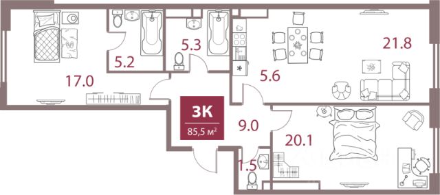 Окна на две стороны, высокие потолки, единая система кондиционирования и вентиляции - максимум света и воздуха!