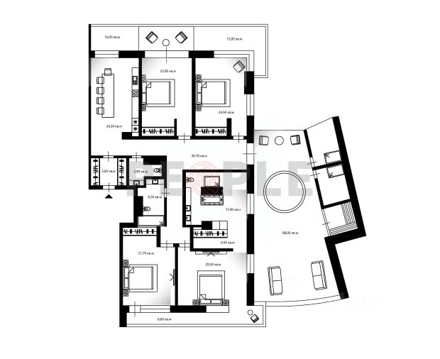 Функциональная планировка: просторная гостиная 29,7 кв.м, две спальни (22,6кв.м и 24,7 кв.м), кухня 16,7 кв.м, основной с/у и гостевой с/у, большой холл, лоджия и уютная терраса, чтобы наслаждаться теплыми днями с чашечкой кофе. Окна выходят на Северо-Запад и Юго-Восток.
