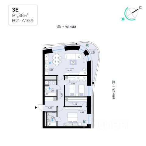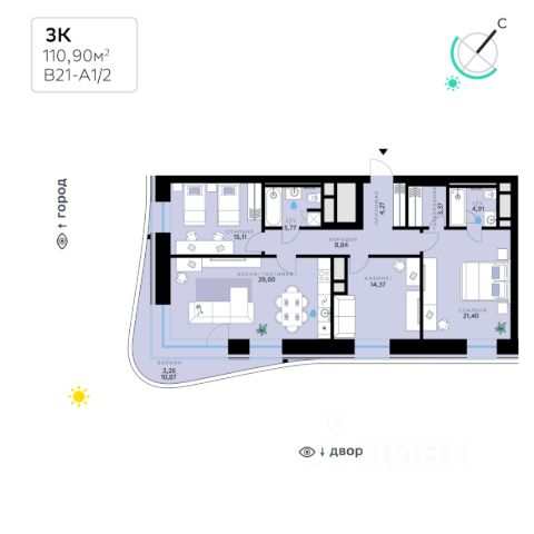 В продаже — трехкомнатная квартира, общей площадью 135,81 кв. м. Квартира расположена на втором этаже семиэтажной секции клубного дома класса Суперб в новом районе СберСити, который строит Сбер. Дом находится на первой береговой линии Москвы-реки. Отделка фасадов корпуса класса Суперб выполнена из природного камня. Дом возводится по технологии монолитного строительства. В квартире проведены работы по улучшению шумоизоляции, установлены двухкамерные стеклопакеты с низкоэмиссионными стёклами, минимизирующими теплопотери. Высота окон — от 3,1 до 3,25 м. Высота потолков — СберСити — это новый жилой и деловой район на западе Москвы, в одном из самых экологически чистых и престижных мест столицы. Это первая в России и крупнейшая в мире инновационная городская среда, созданная по международным стандартам зелёного проектирования. Здесь внедряются решения в области энергоснабжения, вакуумного мусороудаления, тестирования зелёных технологий, а в дальнейшем — системы искусственного интеллекта для управления домами и городской инфраструктурой. Строительство проекта началось в 2021 году, заселение первых корпусов — с лета 2024-го. Общая площадь территории — 461 га, из них более 2,5 млн кв. м жилья и около 833 тыс. кв. м офисных пространств. Будет построено 7 школ, 13 детских садов и 2 поликлиники. В СберСити будут жить 65 тыс. человек и работать 70 тыс. Развитием территории занимается АО "Рублёво-Архангельское", входящее в группу Сбер. СберСити — место, где хочется жить, работать и растить детей. Переезжайте в СберСити!