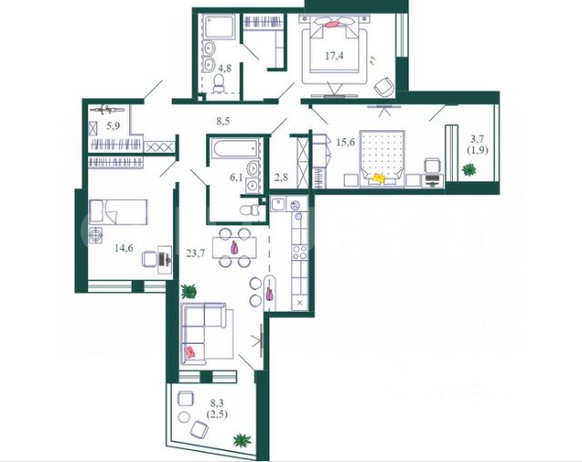 Просторная трехкомнатная квартира с дизайнерским ремонтом приглашает вас стать её новым владельцем. Расположенная в престижном жилом комплексе "V-House", эта недвижимость идеально сочетает комфорт, стиль и удобство расположения. Общая площадь квартиры 104,2 квадратных метров, включая жилую зону площадью 55,6 квадратных метров и огромную кухню размером 40 квадратных метров. Высота потолков - 3,1 метра, создающие эффект дополнительного пространства и воздушности интерьера. Окна выходят одновременно на живописный внутренний двор комплекса и оживленную городскую улицу, обеспечивая разнообразие видов и естественный свет в течение всего дня. Монолитный дом, построенный в 2016 году, оснащён четырьмя лифтами - два пассажирских и два грузовых, что обеспечивает удобное перемещение жителей между этажами независимо от количества багажа или покупок. Подземная парковка гарантирует сохранность автомобиля вне зависимости от погодных условий, а благоустроенная придомовая территория оснащена всеми необходимыми элементами комфорта, включая удобные пандусы для маломобильных групп населения. Интерьер продуман качественно и исполнен с использованием высококачественных материалов. Гостиная и спальни выполнены в современной стилистике, каждая комната обладает индивидуальным характером и уютом. Функциональная ванная комната оборудована сантехникой, обеспечивая комфорт при эксплуатации, комната дополнена шкафчиками и полочками для хранения предметов личной гигиены и аксессуаров. Просторную кухню украшают современные кухонные гарнитуры, здесь найдется место как для приготовления любимых блюд, так и для теплых семейных встреч и праздников. Особое внимание уделено окружающей инфраструктуре района: в близости находятся образовательные учреждения всех уровней, медицинские центры, торговые точки и зоны отдыха. Расположение жилого комплекса в 5 минутах ходьбы от станции метро "Нагорная" существенно упрощает ежедневные перемещения по городу, делая жизнь владельца квартиры ещё более комфортной и приятной. Возможность приобретения жилья в ипотеку также доступна, что позволит приобрести жилье быстро и удобно. "V-House" ждёт новых жильцов, готовых оценить преимущества проживания в тихом зелёном районе столицы с прекрасно обустроенной территорией и качественной внутренней отделкой, обеспечивающей высокий уровень комфорта и удовлетворенности жизнью.