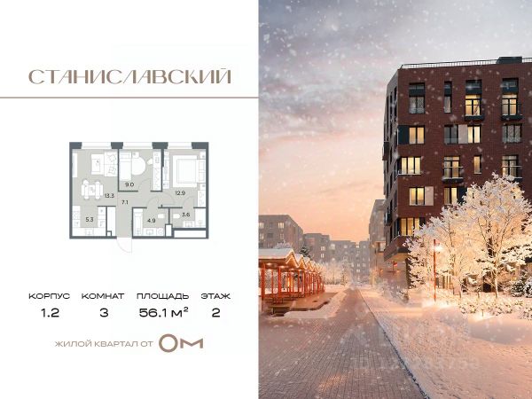 Цена указана с учетом скидки при 100% оплате Продается 3-к квартира общей площадью 56,1 кв. м Без отделки в жилом квартале бизнес-класса Станиславский. ЖК "Станиславский" - это выбор тех, кто готов перейти на новый уровень жизни в престижной локации в 10 минутах от Москвы, пользоваться городской инфраструктурой, но дышать чистым загородным воздухом. Проектом предусмотрено строительство пяти жилых корпусов высотой в 6 этажей. Красивые дома из архитектурной фасадной плитки выполнены в лучших традициях тихих европейских пригородов и скандинавских деревушек. Закрытая территория с собственной инфраструктурой подчеркивает самостоятельность жилого комплекса и создает атмосферу уюта и безопасности. На территории ЖК "Станиславский" реализован уникальный проект активного благоустройства, предлагающий жителям различные сценарии времяпрепровождения. Территория поделена на своеобразные кластеры: holiday-пространство для общих праздников, пикников, барбекю, гриль-вечеринок и совместных кинопросмотров под открытым небом, спортивный кластер с воркаутом, игровым полем, скалодромом и катком, познавательная зона с огородом, скворечниками и микроскопами. Жилой квартал с трех сторон окружен зелеными массивами и при этом находится в самом центре Поздняково, небольшой аккуратной деревни в Красногорском районе Подмосковья. Выезд на Новорижское шоссе всего в 500 метрах путь до МКАД занимает 10 минут в любое время суток. В получасе езды автобусом расположены станции метро "Тушинская" и "Строгино", станция МЦД "Павшино".