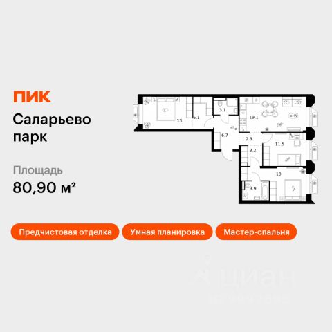 Продаётся 3-комн. квартира площадью 73,6 кв.м на 2 этаже 23 этажного дома (Корпус 69.1, Секция 1) проекта ПИК Саларьево парк. Светлый просторный подъезд на уровне земли, функциональная планировка, большие окна, предчистовая отделка. Жилой район "Саларьево парк" расположен в Новой Москве, в четырёх километрах от МКАД по Киевскому шоссе. Две станции метро: "Саларьево" и "Филатов луг", — находятся в пешей доступности от проекта. Дойти до них можно за 510 минут. В квартале уже создана качественная среда, где есть абсолютно всё для полноценной жизни, работы и отдыха. Благодаря удобному расположению проекта всё важное будет рядом: детские сады, школы, кафе и рестораны, шопинг в торговых центрах, фитнес и даже аэропорт. Все корпуса в квартале гармонично сочетаются, образуя единую городскую среду. Между собой их объединяет невысокая этажность и натуральная цветовая гамма. Здесь приятно гулять и проводить время на улице всей семьёй. В "Саларьево парке" создана уникальная образовательная среда, включающая в себя шесть школ, рассчитанных на 6 250 учеников. Две из них уже открыты, их посещает 2 300 детей. Также на территории "Саларьево парка" находится 12 детских садов, один из которых с бассейном. Сейчас уже открыты 7 садов. В "Саларьево парке" открыта уникальная игровая площадка — PlayHub "Оригами". Здесь есть ручей, горка-труба и рельефные холмы. Взрослые смогут отдохнуть в уютном кафе, пока дети играют. Также на территории проекта есть SportHub — большая спортивная зона, разделённая по интересам и возрастам. Здесь можно заниматься разными видами спорта: футболом, баскетболом, волейболом и стритболом. Зимой центральную часть площадки превращают в каток. Во дворах-парках жилого квартала есть места для отдыха, детские и спортивные площадки. На первых этажах домов расположены магазины, кафе и полезные сервисы. Также вблизи проекта есть несколько масштабных торговых центров. До ТЦ "Саларис" пять минут пешком, до "Рио", Metro Cash & Carry и "Леруа Мерлен" — пять минут на автомобиле. Артикул 1023193 (Застройщик ООО "Специализированный Застройщик "Тирон")