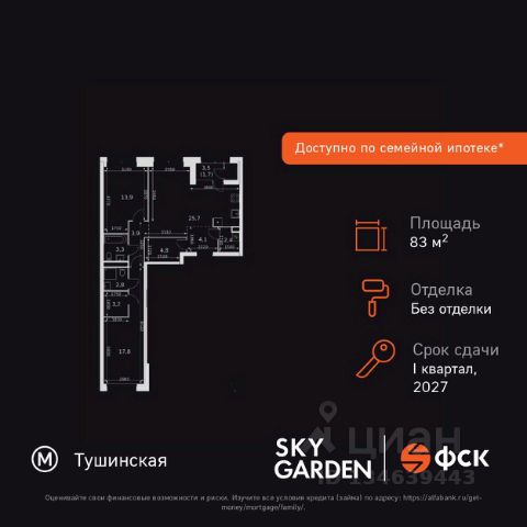 Прямая продажа от застройщика. Продаётся 3-комнатная квартира общей площадью 79.83 м² с предчистовой отделкой в ЖК Сити Бэй, квартале Норс, на 2-м этаже 10 этажного дома. Концепция жилого комплекса Сити Бэй - настоящий город в городе с отлично развитой инфраструктурой и собственной благоустроенной набережной. На территории жилого комплекса расположено пять кварталов - Атлантик, Пасифик, Индиан, Норс, Клиф. Жилой квартал Сити Бэй отличается оригинальной концепцией и выделяется среди других проектов такими характеристиками как: - Архитектура, - Виды из окон, - Природное окружение, вызывая гордость у жителей и восхищение у прохожих. Вся жизнь района Покровское-Стрешнево строится вокруг водных объектов: - Пойма реки Сходни с уникальной экосистемой, - Речка Химка и Химкинское водохранилище, - Москва-река, - Канал имени Москвы. Кругом вода, и местные с удовольствием этим пользуются. А сразу за рекой - центр водного спорта в Строгино с вейк-парком и яхт-Клубами. Помимо воды, здесь очень много зелени: - Рядом Сходненский ковш памятник природы, естественный амфитеатр глубиной 40 метров; - Парк при усадьбе Братцево с фруктовым садом; - Дубовая роща "Маяк", - Алешкинский лес; - Лесопарк Покровское-Стрешнево с пляжами и бобрами. Главные транспортные артерии района: - Волоколамское шоссе, - Таганско-Краснопресненская линия метро и МЦД-2. Всего за 20 минут можно добраться до центра на машине или метро, а МЦД связывает ЖК Сити Бэй с северными, восточными и юго-восточными районами. Компания MR предлагает своим клиентам специальные условия приобретения квартир в рамках программ ипотечного кредитования от банков-партнеров.