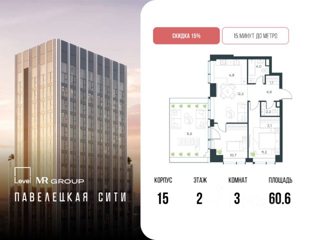 Продажа 3-комнатных квартир на 2 этаже рядом с метро Тульская