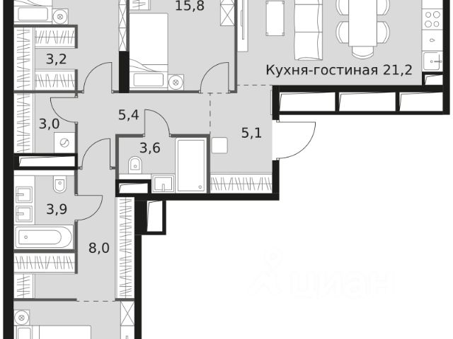 В продаже — трехкомнатная квартира с чистовой отделкой, общей площадью 133,07 кв. м. Квартира расположена на втором этаже семиэтажной секции клубного дома класса Суперб в новом районе СберСити, который строит Сбер. Дом находится на первой береговой линии Москвы-реки. Отделка фасадов корпуса класса Суперб выполнена из природного камня. Дом возводится по технологии монолитного строительства. В квартире проведены работы по улучшению шумоизоляции, установлены двухкамерные стеклопакеты с низкоэмиссионными стёклами, минимизирующими теплопотери. Высота окон — от 3,1 до 3,25 м. Квартира сдаётся без отделки. Высота потолков — от 3,45 до 3,65 м. В доме расположены: • круглосуточный консьерж-сервис, • уютное лобби, • лапомойка, • общественная гостиная, • коворкинг для жителей, • собственная спортивная студия, • колясочная и велосипедная комната на первом этаже, • детская игровая комната, • подземный паркинг. СберСити — это новый жилой и деловой район на западе Москвы, в одном из самых экологически чистых и престижных мест столицы. Это первая в России и крупнейшая в мире инновационная городская среда, созданная по международным стандартам зелёного проектирования. Здесь внедряются решения в области энергоснабжения, вакуумного мусороудаления, тестирования зелёных технологий, а в дальнейшем — системы искусственного интеллекта для управления домами и городской инфраструктурой. Строительство проекта началось в 2021 году, заселение первых корпусов — с лета 2024-го. Общая площадь территории — 461 га, из них более 2,5 млн кв. м жилья и около 833 тыс. кв. м офисных пространств. Будет построено 7 школ, 13 детских садов и 2 поликлиники. В СберСити будут жить 65 тыс. человек и работать 70 тыс. Развитием территории занимается АО "Рублёво-Архангельское", входящее в группу Сбер. СберСити — место, где хочется жить, работать и растить детей. Переезжайте в СберСити!