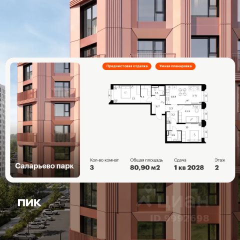 Продаётся 3-комн. квартира площадью 67,1 кв.м на 2 этаже 14 этажного дома (Корпус 74.3, Секция 3) проекта ПИК Саларьево парк. Светлый просторный подъезд на уровне земли, функциональная планировка, большие окна, предчистовая отделка. Жилой район "Саларьево парк" расположен в Новой Москве, в четырёх километрах от МКАД по Киевскому шоссе. Две станции метро: "Саларьево" и "Филатов луг", — находятся в пешей доступности от проекта. Дойти до них можно за 510 минут. В квартале уже создана качественная среда, где есть абсолютно всё для полноценной жизни, работы и отдыха. Благодаря удобному расположению проекта всё важное будет рядом: детские сады, школы, кафе и рестораны, шопинг в торговых центрах, фитнес и даже аэропорт. Все корпуса в квартале гармонично сочетаются, образуя единую городскую среду. Между собой их объединяет невысокая этажность и натуральная цветовая гамма. Здесь приятно гулять и проводить время на улице всей семьёй. В "Саларьево парке" создана уникальная образовательная среда, включающая в себя шесть школ, рассчитанных на 6 250 учеников. Две из них уже открыты, их посещает 2 300 детей. Также на территории "Саларьево парка" находится 12 детских садов, один из которых с бассейном. Сейчас уже открыты 7 садов. В "Саларьево парке" открыта уникальная игровая площадка — PlayHub "Оригами". Здесь есть ручей, горка-труба и рельефные холмы. Взрослые смогут отдохнуть в уютном кафе, пока дети играют. Также на территории проекта есть SportHub — большая спортивная зона, разделённая по интересам и возрастам. Здесь можно заниматься разными видами спорта: футболом, баскетболом, волейболом и стритболом. Зимой центральную часть площадки превращают в каток. Во дворах-парках жилого квартала есть места для отдыха, детские и спортивные площадки. На первых этажах домов расположены магазины, кафе и полезные сервисы. Также вблизи проекта есть несколько масштабных торговых центров. До ТЦ "Саларис" пять минут пешком, до "Рио", Metro Cash & Carry и "Леруа Мерлен" — пять минут на автомобиле. Артикул 1006471 (Застройщик ООО "Специализированный Застройщик "Тирон")
