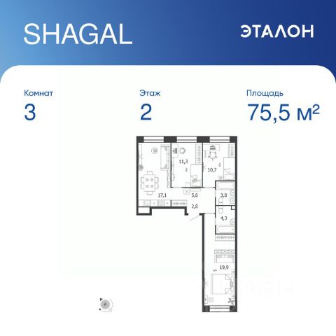 Продается 3-к квартира без отделки в ЖК "Shagal". Общая площадь квартиры — 98.3 кв. м, этаж 2 из 15. Тип дома — монолитный. Цена указана при 100% оплате. Квартал Shagal — крупнейший проект комплексного освоения в Москве. В проекте реализуется продуманная система маршрутов. Еда, покупки, услуги, прогулки, спорт, образование, работа и развлечения — все будет находиться рядом с домом: принцип 15-минутной доступности инфраструктуры и сервисов. Разнообразие и продуманность пешеходных маршрутов, а также короткие расстояния между основными точками притяжения мотивируют резидентов Shagal с удовольствием передвигаться по району пешком, не выпадая из ритма большого города. Продуманная транспортная сеть района и безопасный скоростной режим создают комфортные условия для перемещений любым способом: на автобусе, машине, самокате или велосипеде. Не нужно выезжать из района, чтобы получить комфорт и сервис самого высокого современного стандарта: все необходимые услуги, инфраструктура, парки и вторая по протяженности набережная в городе — на расстоянии 15-минутной прогулки от вашего дома. Квартал Shagal станет первым в Москве жилым районом, где будут комплексно реализованы инновационные подходы в проектировании и строительстве зданий. Архитектурная композиция состоит из домов отличающегося типа. Высотные башни-доминанты с видовыми квартирами, дома пониже, растворяющиеся в спокойствии внутренних двориков, малоэтажные камерные таунхаусы и разноэтажные дома с лоджиями на первой береговой линии соединяются в одно эстетичное современное произведение. В результате создаётся насыщенное идентичное пространство, подчёркнутое плавностью природных форм, наполненное светом, воздухом и свободой.