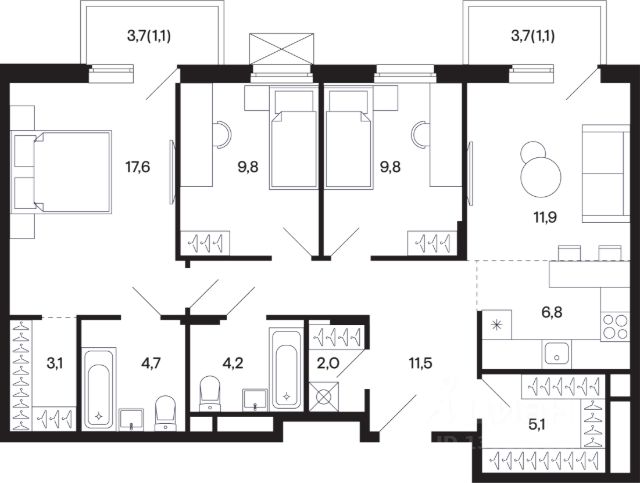 Продается квартира в ЖК "Базаева, 11" с 3 спальнями на 4 этаже 5 этажного дома. Общая площадь: 84.9 кв.м. Высота потолков 2.72 м. Срок сдачи 2 квартал 2027 г. Эскроу-счет. Застройщик ГК "Садовое кольцо". Расположение Жилой комплекс в экологически чистом районе Московской области городском округе Шаховская. Камерное пятиэтажное здание находится в пешей доступности от всей необходимой инфраструктуры. Автостанция Шаховская расположена в 10 минутах от дома. Всего в 11 минутах ходьбы находится ж/д станция Шаховская, откуда удобно добраться электричкой до Рижского вокзала. Дорога до МКАД займет 1,5 часа на автомобиле. Инфраструктура Проект расположен рядом с современным теннисным центром и Дворцом торжеств. В шаговой доступности — детская школа искусств, Шаховская гимназия, школа 1 и три детских сада. Всего за 3 минуты от дома можно дойти до Городского парка — здесь вас ждут аттракционы, верёвочный городок, тюбинговая горка и ресторан. Парк соседствует с живописным сквером у реки, украшенным подвесными мостами, ротондой и фонтанами. Внутренний двор На территории проекта появится огороженная детская площадка, рассчитанная на детей всех возрастов, — с песочницей, канатным комплексом и зоной для игр. Для любителей активного образа жизни будет обустроена спортивная площадка с теннисным столом, турниками, тренажёрами и гимнастическими брусьями. Для автовладельцев на территории проекта предусмотрена удобная плоскостная парковка на 81 машино-место. Архитектура Монохромное здание оформлено декоративным кирпичом и штукатуркой в тёплых светло-серых и насыщенных серых тонах. Эстетику фасада подчёркивают террасные ограждения и корзины для кондиционеров, выдержанные в единой цветовой гамме. Входная группа Входные группы спроектированы на уровне земли — без ступеней и перепадов. Такой подход обеспечивает комфортный доступ в подъезд с коляской, чемоданом или велосипедом и подчеркивает продуманную архитектуру дома.